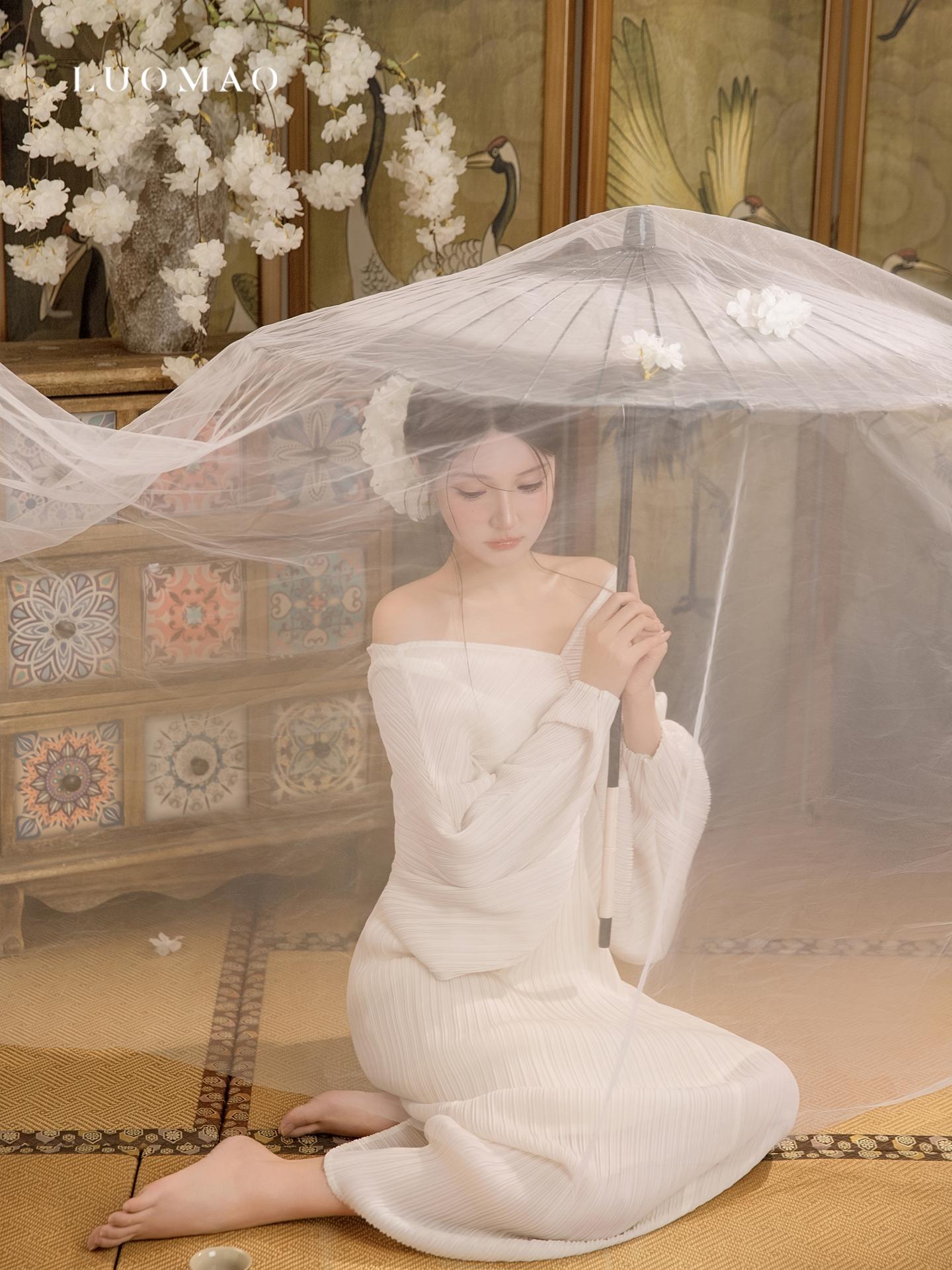 新中式清冷白纱写真,把 “易碎感” 拍透了
