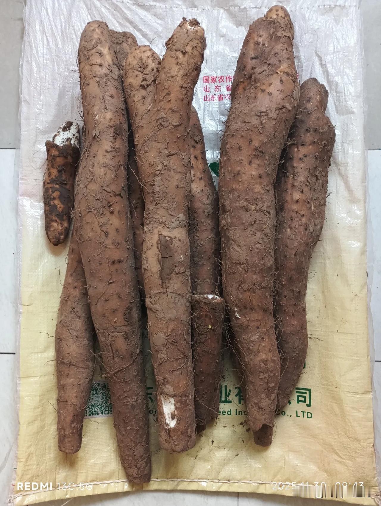 第一次见挖山药的,可真费劲! 约半米宽的沟,得小心翼翼的挖大约一米的深度。看着、等着得有半个多小时,就挖出来这些,当场买下了。2.3元一斤,也不知市场价多少?买的最大的长63厘米,最粗的跟脚脖子差不多粗。乡里乡亲的,估计也不会多要钱?[憨笑]