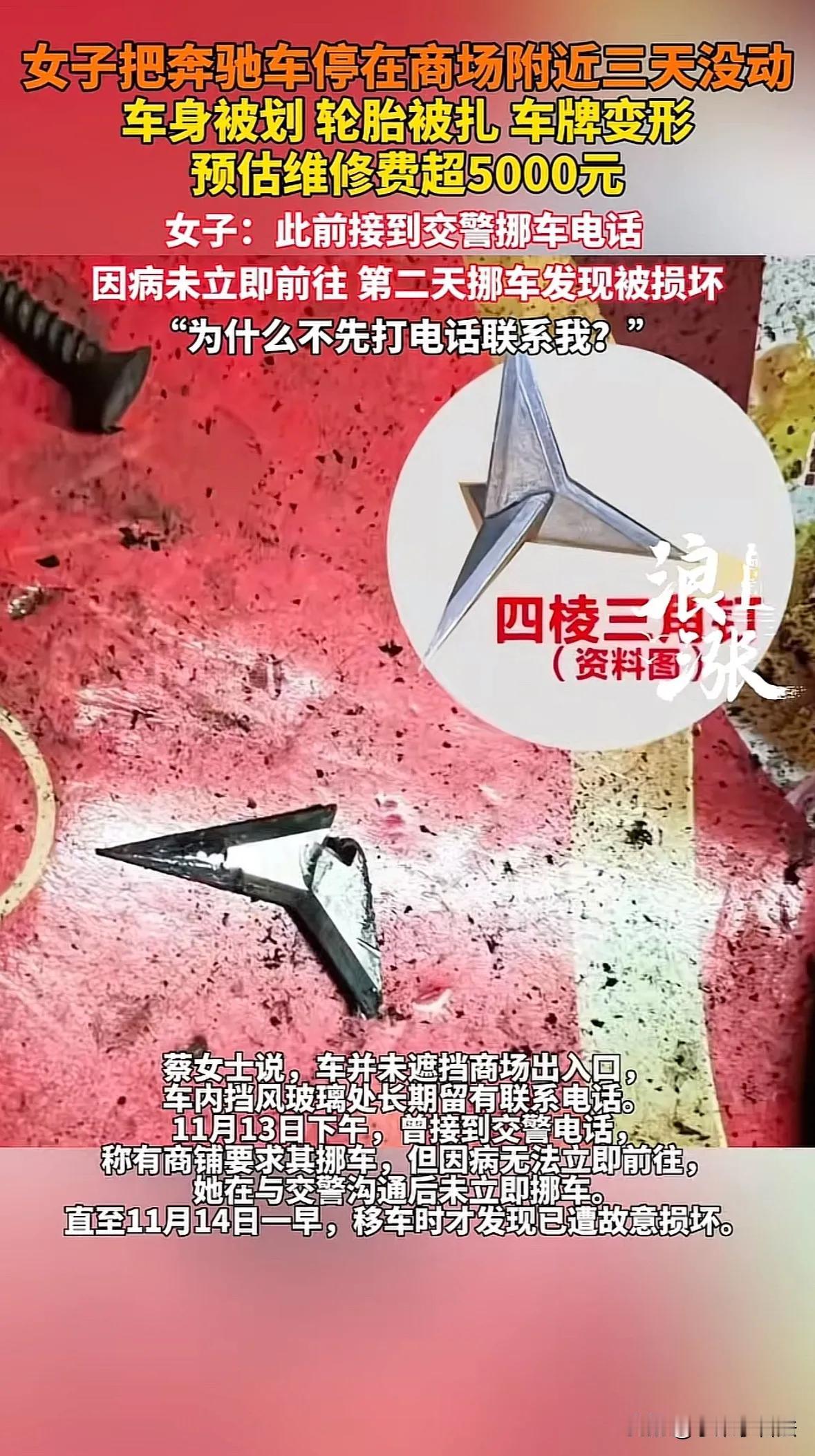 大连一位女车主把奔驰SUV停在商场门口两天没挪窝,结果车被人划了两米长的口子,轮胎被扎,车牌都给掰弯了。修车得花五千多块,她觉得自己特别委屈:“我车上留着电话呢,怎么没人打给我?” 可仔细想想,这事儿真不能全怪别人。 第一,停车不能太任性 商场门口毕竟是做生意的地方,您一停两天,确实耽误事儿。就算以前没人说,不代表这事儿就对。就像邻居天天半夜唱歌,突然有一天被投诉了,不能反怪别人“以前怎么不说”。 第二,沟通是双向的 虽然她留了电话,但交警第二天下午就联系过她挪车。那时候她因为生病没去,可能对方觉得“交警叫你都不挪,我们打电话有用吗”。这就好比老师布置作业,你说生病写不了,但总得有个交代。 第三,解决问题的方法有很多 划车那位确实冲动了。本来有理的事,这一划倒把自己划成了理亏。就像两个人吵架,先动手的那个就算有理也变没理了。 要我说,这事儿给所有人都提了个醒: 开车的别把公共地方当自家车库 遇到事儿先沟通,别急着发泄 生病确实情有可原,但该挪的车还是得挪 现在倒好,一个要花五千多修车,一个可能要赔钱甚至被拘留,双输。 最后送大家一句话:与人方便,自己方便。要是都能多替对方想一步,这世上能少多少麻烦事。保定奔驰事件 奔驰事故
