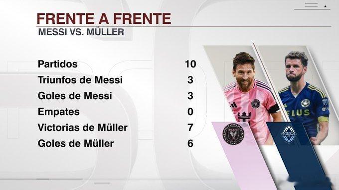 【美职联总决赛:迈阿密国际队vs温哥华白浪队】梅西将再次遇上穆勒,两人此前共交手10次,梅西打入3球赢了3次,穆勒打入6球赢了7次,这次谁会笑到最后?