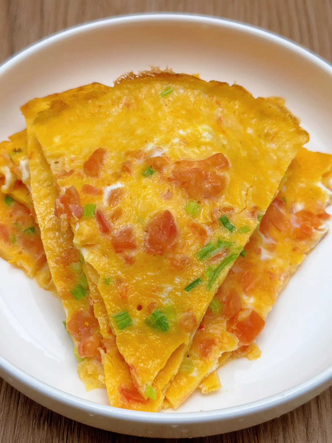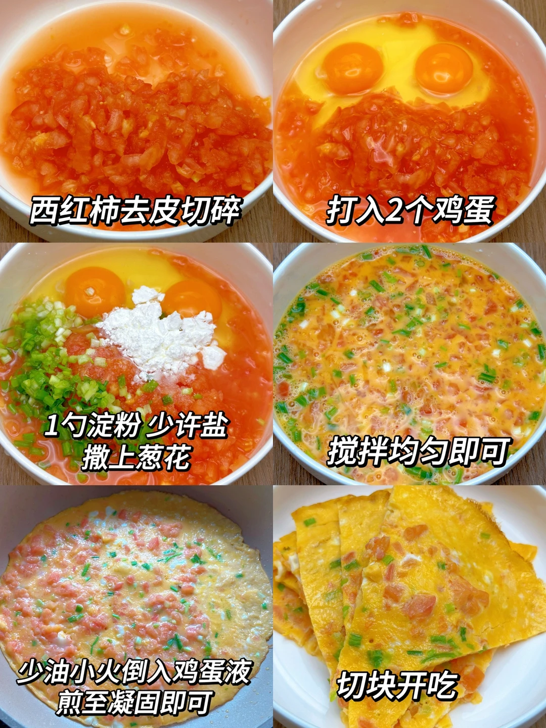 啊啊啊家人们,减脂期快去试试这个低卡低脂西红柿鸡蛋饼,这样做真的好看又好吃,全家都喜欢吃,又香又美味、酸甜酸甜的,吃一口惊艳到我了,巨巨巨好吃,而且做法简单,姐妹们一定要试试哟~ 🥗食材:鸡蛋、西红柿、葱花 🥘做法:如图所示
