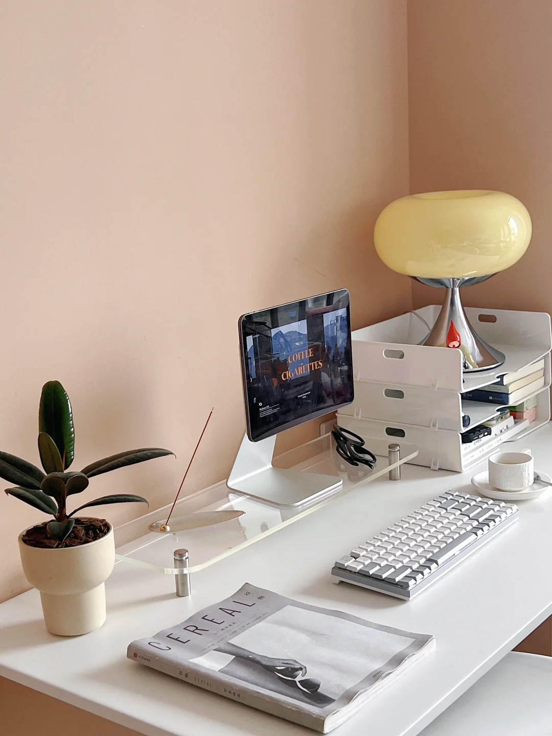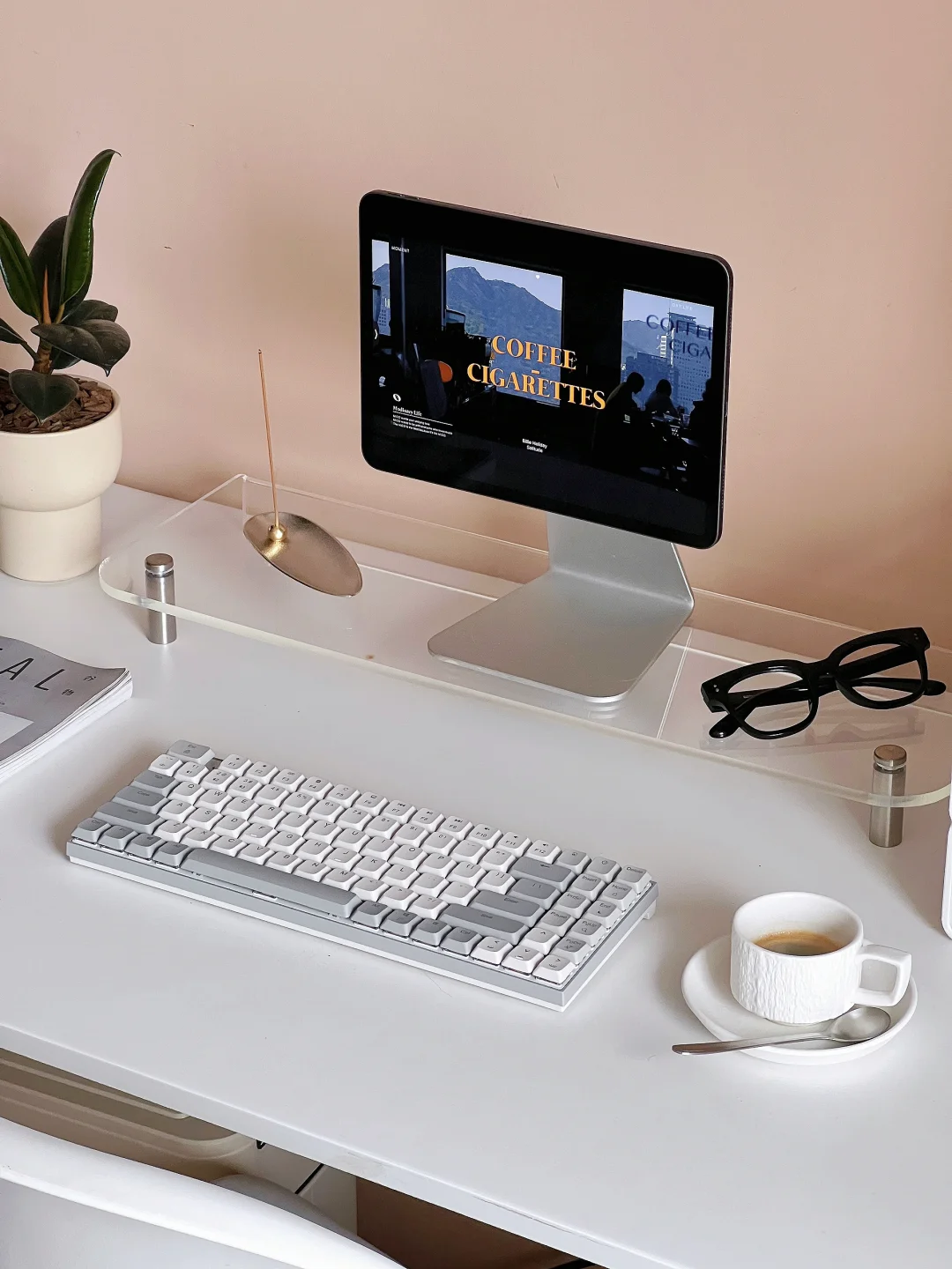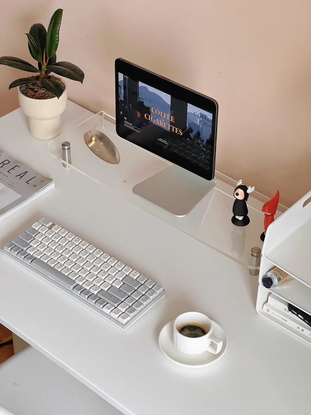 我自己也喜欢ins风无纸化书桌呀。 干净整洁的桌面让人心情舒畅。 ipadpro一直充当着居家办公小能手 新换了绿联KU102键盘⌨️ 小巧玲珑很可爱 不知道有没有人和我一样 很喜欢沉浸式欣赏背光效果😂😘 工作时,会点燃一只焦糖咖啡味的线香 冲一杯意式浓缩 享受书桌带来的氛围感吧。