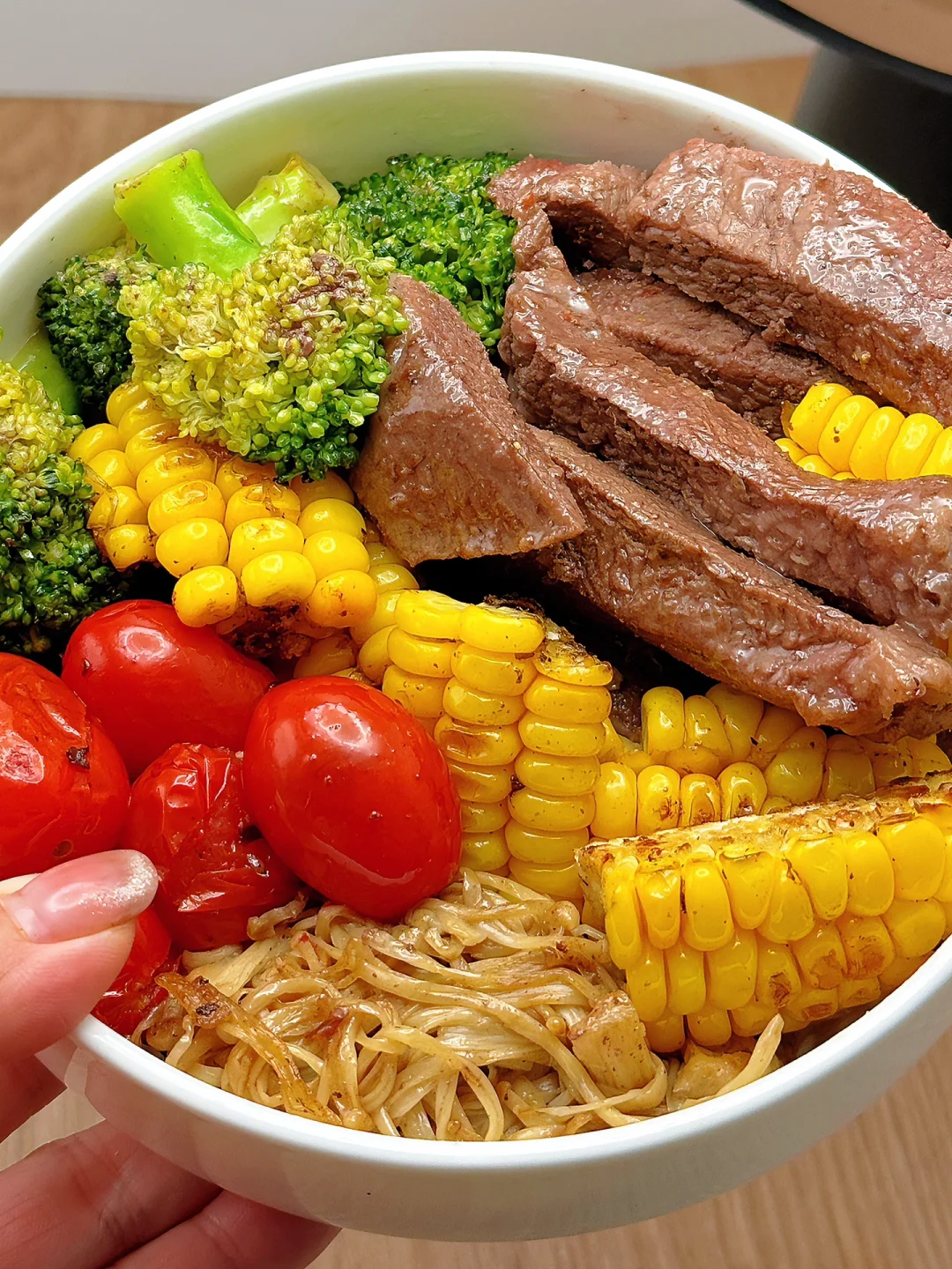 🥗食材:牛肉、西兰花、玉米、圣女果