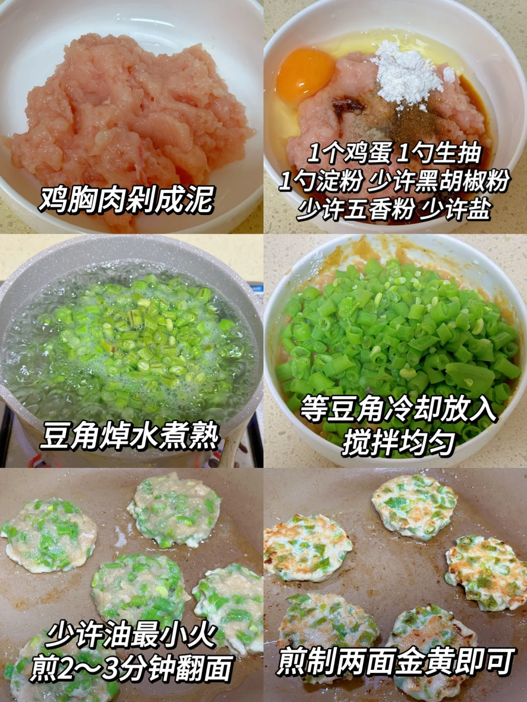 🥗食材:鸡胸肉1块、长豆角(做了10个饼)