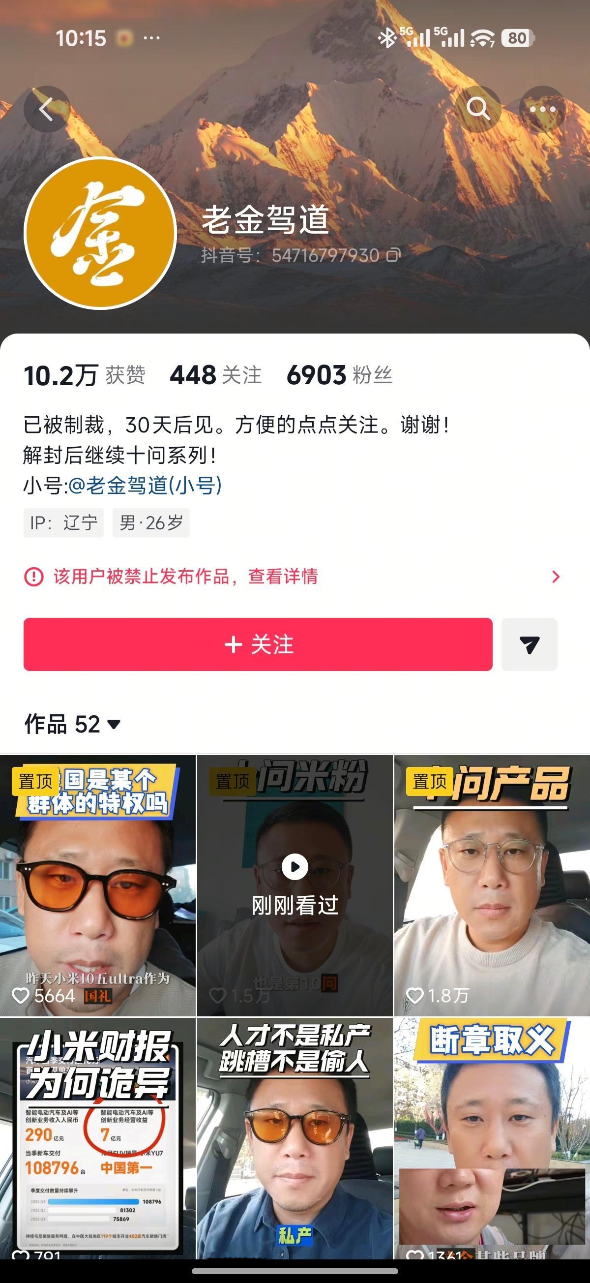 什么情况,前两天发布“十问米粉”的老金被封号了?又是因为什么原因,我看视频里聊的基本上都是小米嘛。