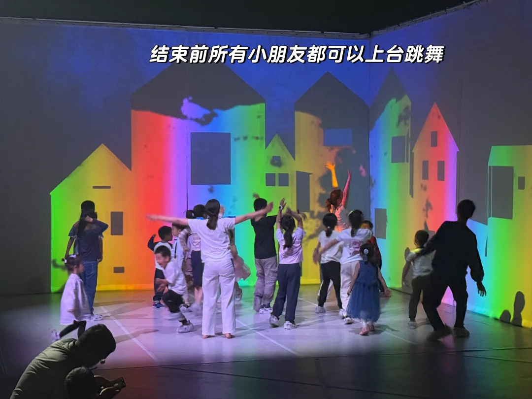今天带4岁半的哥哥和1岁半的弟弟 去蹦迪了‼️ . 本来以为是个很高级的演出 毕竟是意大利🇮🇹剧团 没想到互动性这么强 哥哥跟弟弟都被邀请到台上参与演出了🎭 (结束前,所有的小朋友都可以上台👏 . 下台后我问哥哥 “刚刚你演的是什么?” “我们画画了” “画了什么?” “画了一个七彩的城市🏙️” 妈妈简直被浪漫哭了😭 . 大家有时间一定要带娃去体验一下 绝对是一生难忘的体验! .