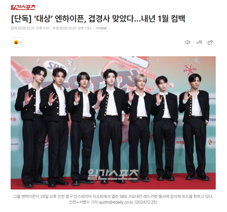 独家:ENHYPEN将于1月中旬回归 1日据独家报道,ENHYPEN将于明年1月