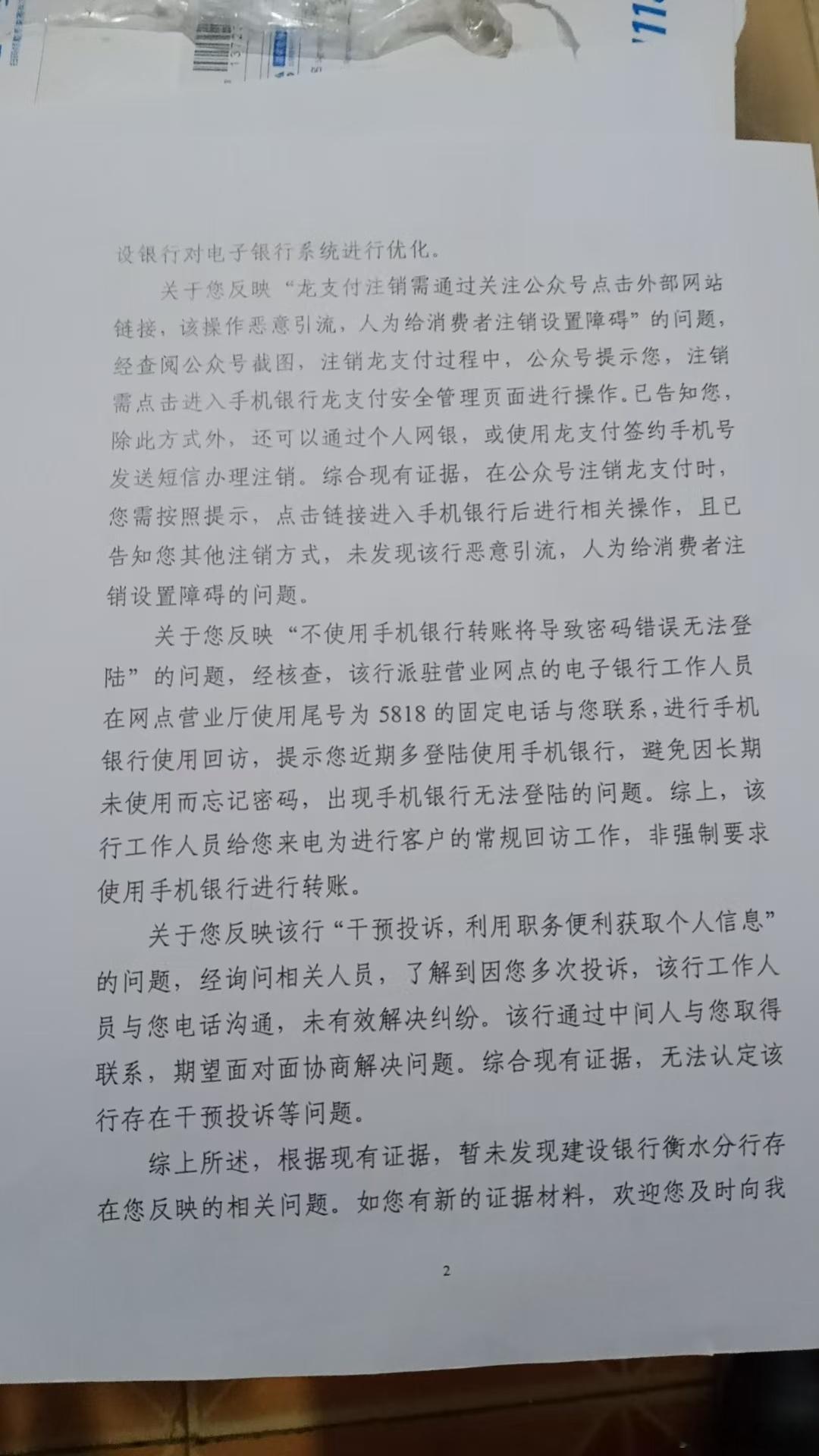 事实模糊引法缺失 衡水金融监管分局答复意见书遭质疑“答复里说银行没违规,但我的证据明明能证明问题,监管部门却视而不见。”近日,河北衡水一位消费者拿着衡水金融监督管理分局(下称“衡水分局”)出具的《信访事项答复意见书》满心困惑。这份本应厘清建行衡水分行疑似违规问题的官方文件,因事实认定偏差、法律依据缺失,反而成为消费者维权的“拦路虎”。纠纷始于2025年2月,该消费者为孩子缴纳学费时,被建行衡水分行要求必须开通手机银行与龙支付,否则无法使用指定银行卡完成交易。而此前2024年9月,无需此类绑定服务即可正常缴费。无奈开通后,他发现龙支付注销需跳转外部链接,APP内无直接操作端口,且3月一名建行工作人员电联告知“不使用手机银行转账将导致密码错误”,4月其户籍地政府人员竟介入劝说停止投诉,疑似个人信息被银行泄露。在累计200余次投诉后,衡水分局于11月25日出具答复意见书,全盘认定建行“无违规”。但仔细比对事实与法律,这份答复的问题逐一浮现。问题一:事实认定避重就轻,关键证据被忽略。答复称建行缴费限制是“系统优化”,却未核查银行“未提前告知优化内容”“未提供柜台缴费等替代方案”的事实;认定“龙支付注销途径多元”,却回避消费者“客服仅告知公众号注销方式”的核心诉求;将银行对接政府解释为“无法联系本人”,但消费者通话记录显示其从未拒接银行来电,且银行始终未说明获取户籍地信息的合法途径。问题二:法律适用空白,监管职责未落实。《消费者权益保护法》第八条明确消费者享有知情权,建行未告知服务变更细节,已侵犯该权利,答复却未提及此条款;《个人信息保护法》第六条要求处理个人信息需“目的明确、范围合理”,银行将消费者信息用于联系政府干预维权,明显超出业务必要范围,答复对此未做合法性审查;《银行业保险业消费投诉处理管理办法》第二十八条规定监管机构需“全面核查双方证据”,但答复仅采信建行单方说辞,对消费者持有的银行领导致歉录音、投诉记录等证据视而不见。问题三:行政承诺失信,程序存在瑕疵。答复书明确“欢迎提供新证据”,但11月28日消费者携补充材料上门时,却被衡水分局纪检及信访人员以“属消保管辖”等理由拒绝接收,未按《信访工作条例》第二十二条规定履行“登记、分办”义务,程序严重违规。“监管部门的答复得站得住脚,既要看事实,也要合法律。”业内人士表示,金融监管答复意见书是维护市场秩序的重要载体,事实不清、引法不明的答复,会直接削弱监管公信力。目前,消费者已向上级监管部门提交异议,期待得到公正处理。这份存在争议的答复背后,衡水分局如何落实“依法监管、为民监管”的要求,值得关注。建设银行衡水分行建设银行河北省分行建设银行河北省金融监督管理分局国家金融监督管理总局