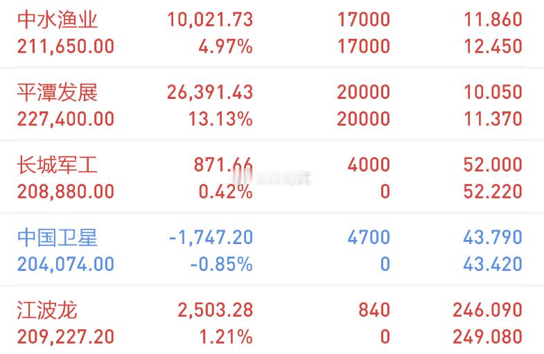 【今日复盘】买入:通宇通讯(上板,废单买不进)买入:长城军工买入:江波龙买入:中国卫星持有:平潭发展--目前+13.13%持有:中水渔业---目前+4.97%卖出:无文总每天都会分享操作并记录下来! 点赞富一生,股票长虹。特别声明:本内容为个人实盘记录,不构成投资建议,更不鼓励跟买!股市有风险,投资请理性!$长城军工 sh601606$ $江波龙 sz301308$ $中国卫星 sh600118$ $平潭发展 sz000592$ $中水渔业 sz000798$