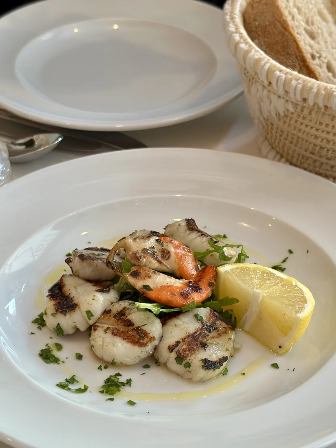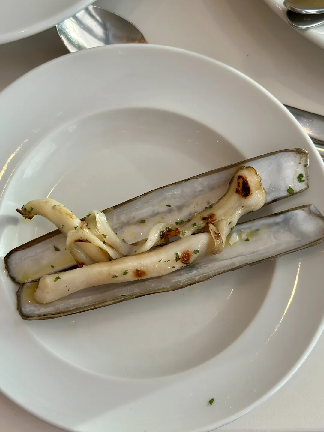 这个蛏子tei肥美了🥹好吃到内心激动在流泪,一刀切下,感觉Q弹到会飞出盘子外。海鲜的鲜&橄榄油的香组成贝壳上的汁水。这些精华绝不放过,面包蘸酱火速光盘。