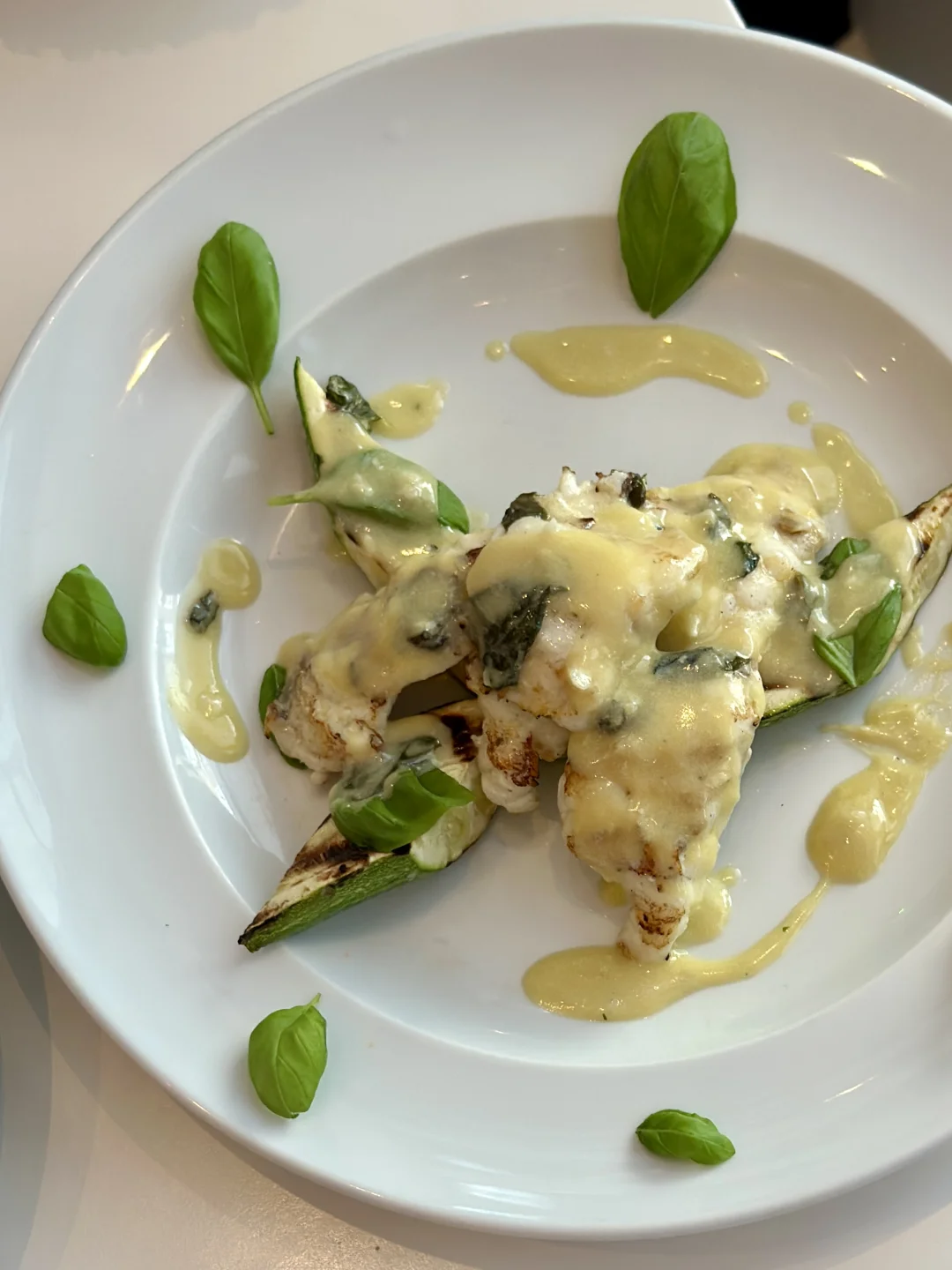 CODA DI ROSPO 烤安康鱼配西葫芦罗勒叶
