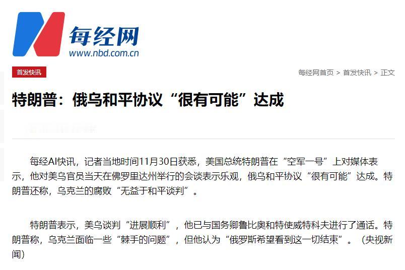 谈判结束,泽连斯基很开心 当地时间 11 月 30 日,特朗普在空军一号上对外透露:他对美乌双方在佛罗里达州举行的会谈十分乐观,和平协议很有可能达成。 这已经不是特朗普第一次画大饼了,从2025年初上台时夸下“24小时解决冲突”的海口,到后来改口六个月、四月限期,再到现在的“没有最后期限”,白宫的时间表像橡皮筋一样越拉越长。 这次佛罗里达会谈后,泽连斯基罕见松口说“建设性进展”,但明眼人都知道,这场谈判的水比黑海还深。 美国这次掏出的19点方案(原28点被乌克兰删掉9条),核心就是让乌克兰“就地停火”,承认俄罗斯对现有占领区的控制,换取美国牵头的安全保障。听起来像买卖,实则是乌克兰拿领土换喘息。 泽连斯基不是没挣扎过,今年2月他在白宫和特朗普吵到提前离场,就是因为美方想拿克里米亚做交易。但现在不一样了,乌克兰反腐风暴刮倒了前谈判负责人叶尔马克,国内主战派声音渐弱,前线俄军持续轰炸基础设施,泽连斯基急需一场“外交胜利”稳住民心。 特朗普的算盘更现实。中期选举临近,他需要在外交成绩单上添一笔。幕僚长私下算过账:如果12月初能促成停火,正好赶上选民节前情绪回暖。 但他低估了两个变量:首先是乌克兰的腐败烂到根子里,叶尔马克的搜查案暴露了谈判团队内部的利益输送,美方怀疑乌方一边谈和平一边吃回扣,直接影响协议执行;其次是俄罗斯的耐心。 佩斯科夫说得明白:“停火可以,但别设期限。”莫斯科看透了美国急于抽身的心态,宁愿拖字诀也不愿让步。 谈判桌上的细节充满火药味。美方要求乌克兰在停火后90天内举行大选,明着是推动民主,暗里是逼泽连斯基下台,毕竟亲西方的新政府更容易接受领土妥协。乌方则咬死“不放弃一寸土地”,但偷偷在方案里加了“国际监督撤军”的条款。 最棘手的是克里米亚,特朗普想让乌克兰“默认现状”,泽连斯基却坚持写入“未来公投”,等于给俄罗斯埋了颗定时炸弹。这种文字游戏,让俄方特使威特科夫每次飞莫斯科都头疼。 更微妙的是欧洲态度。法国悄悄给乌克兰递话:“美国靠不住,我们支持你保留主权。”但马克龙心里清楚,真打起来欧洲还得掏腰包。这种三角关系让特朗普烦躁,他在幕僚会上骂“欧洲只会嘴上支持”,却不得不继续给乌克兰施压,毕竟1000多发SR-4火箭弹的钱(类比泰国案例),美国纳税人不想再掏了。 现在的僵局像极了菜市场讨价还价:乌克兰要“体面的和平”,俄罗斯要“实质的利益”,美国要“快速的政绩”。特朗普说“双方都想结束冲突”,其实各怀鬼胎。 泽连斯基敢笑,是因为他知道美国不敢真的撒手,一旦乌克兰崩盘,北约东翼门户洞开,欧洲难民潮重演,这些锅都得特朗普背。俄罗斯更不急,冬季来临,乌军后勤压力陡增,拖到明年春天,战场形势可能反转。 最讽刺的是“腐败阻碍和平”的论调。特朗普一边骂乌克兰腐败,一边让女婿库什纳插手谈判,这位老兄在中东的斡旋史充满争议。乌克兰官员私下嘀咕:“美国说我们贪,他们自己不也在谈矿产协议?”这种双标,让本就脆弱的信任更像纸糊的窗户。 这场谈判本质是三方博弈的缩影,美国想止损,俄罗斯要保底,乌克兰求生存。特朗普的乐观,不过是选举周期下的政治话术;泽连斯基的开心,可能只是暂时缓解了美国断援的压力。当威特科夫带着修改后的方案飞往莫斯科时,克里姆林宫的茶杯都没换,他们见过太多美国的“最后期限”,知道真正的和平,从来不是谈出来的,而是打出来的平衡。