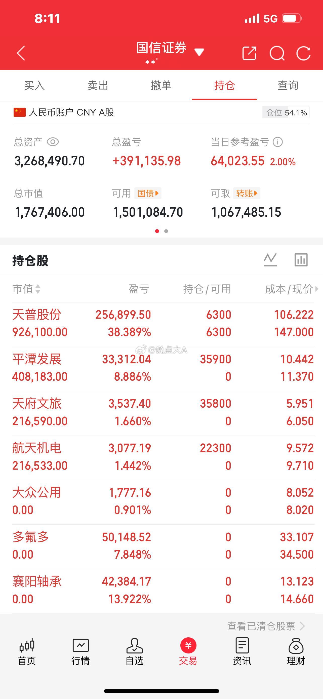 250万本金剑指1500万!一年6倍神话,今日正式启航(第21天)🔥 买入: $天府文旅(SZ000558)$ $航天机电(SH600151)$ $平潭发展(SZ000592)$ 持有: $天普股份(SH605255)$卖出:$大众公用(SH600635)$ $多氟多(SZ002407)$ $襄阳轴承(SZ000678)$ 当前持仓同步锁定,每一笔操作全程透明可追溯! 路过的铁子狠狠点赞,满屏扣“178”为大A注入强心剂,我必每日雷打不动更新实盘,用交割单说话!记住:点赞暴富三代,评论锦鲤附体,转发躺赢一生! ⚠️ 最后划重点:每个人风险承受力、交易节奏天差地别,我的持仓仅作记录分享,绝不构成投资建议!盲目跟风盈亏自负,理性布局才是王道~