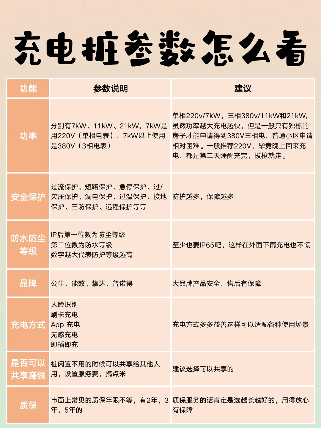 (★质保期限越长越好,最好选择包含安装服务的充电桩)