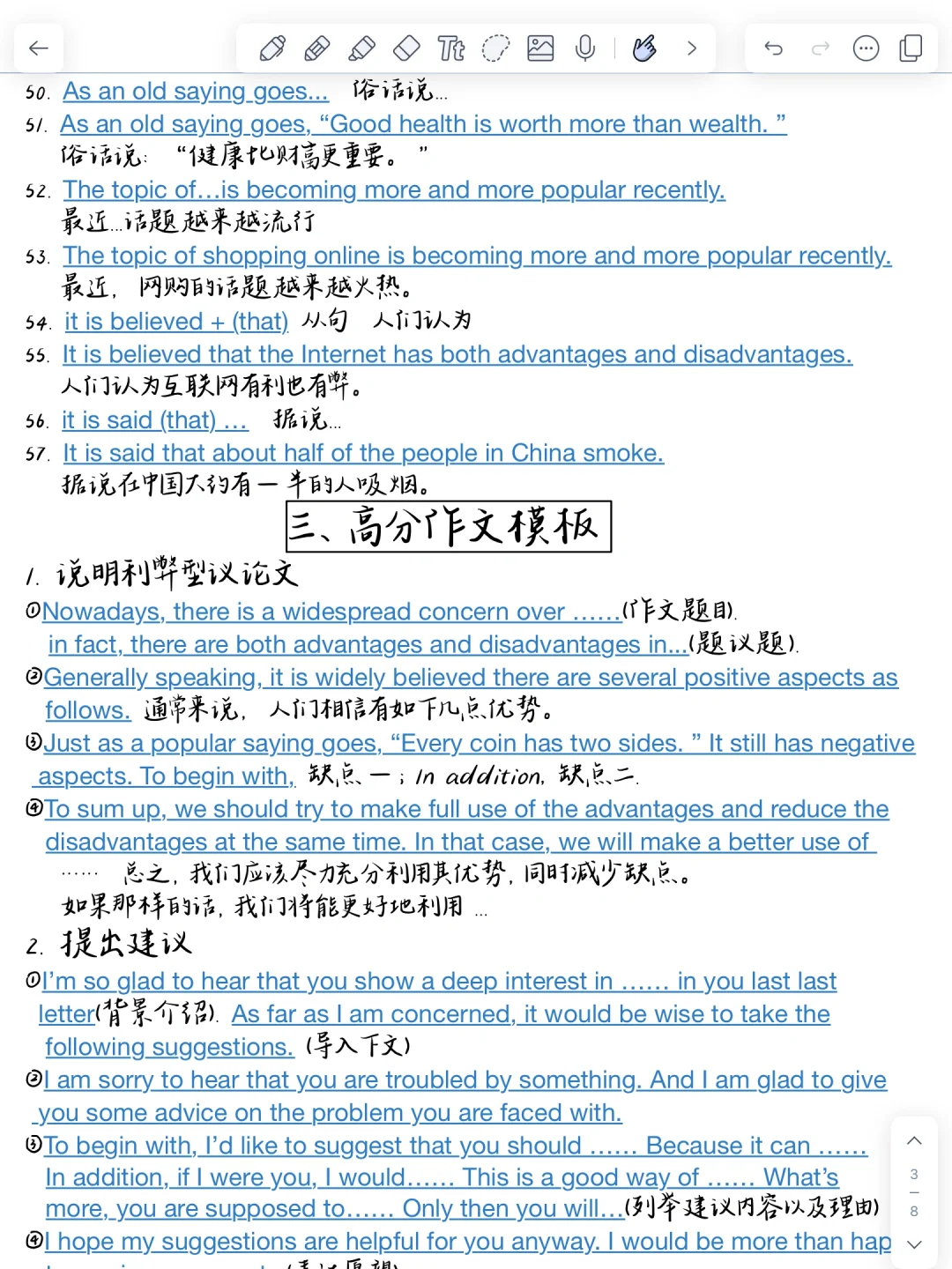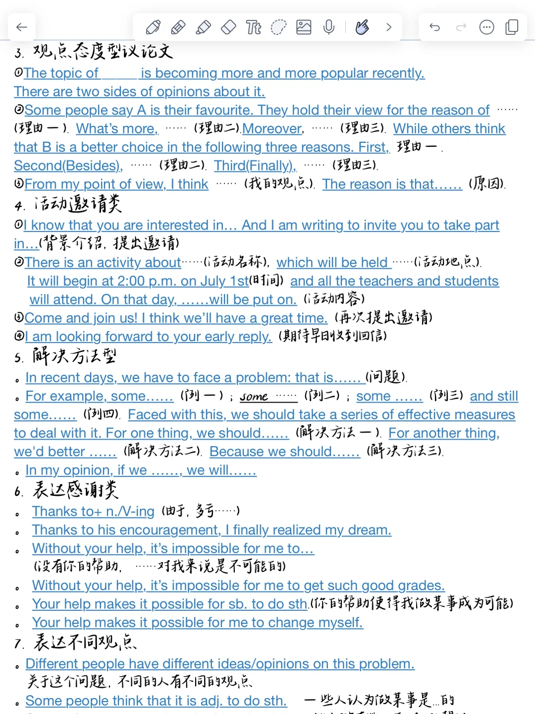 一、连接过渡词 二、常用句型 三、高分作文模板(18类) 四、8篇作文范文
