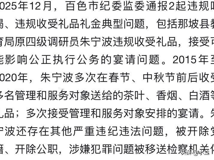 今天广西百色的朱宁波又上了热搜 他出生在1969年 在那坡教育广电等行业深耕多年 曾在那坡任过很多重要岗位 有着37年的丰富工作经验 是那坡本地不折不扣的资深人士 他今年已经56岁了 再有个四五年就能退休 本以为他能够平稳着陆 没成想今天他却上了热搜 如今实在让人唏嘘 这印证了老话 莫伸手,伸手必被捉!