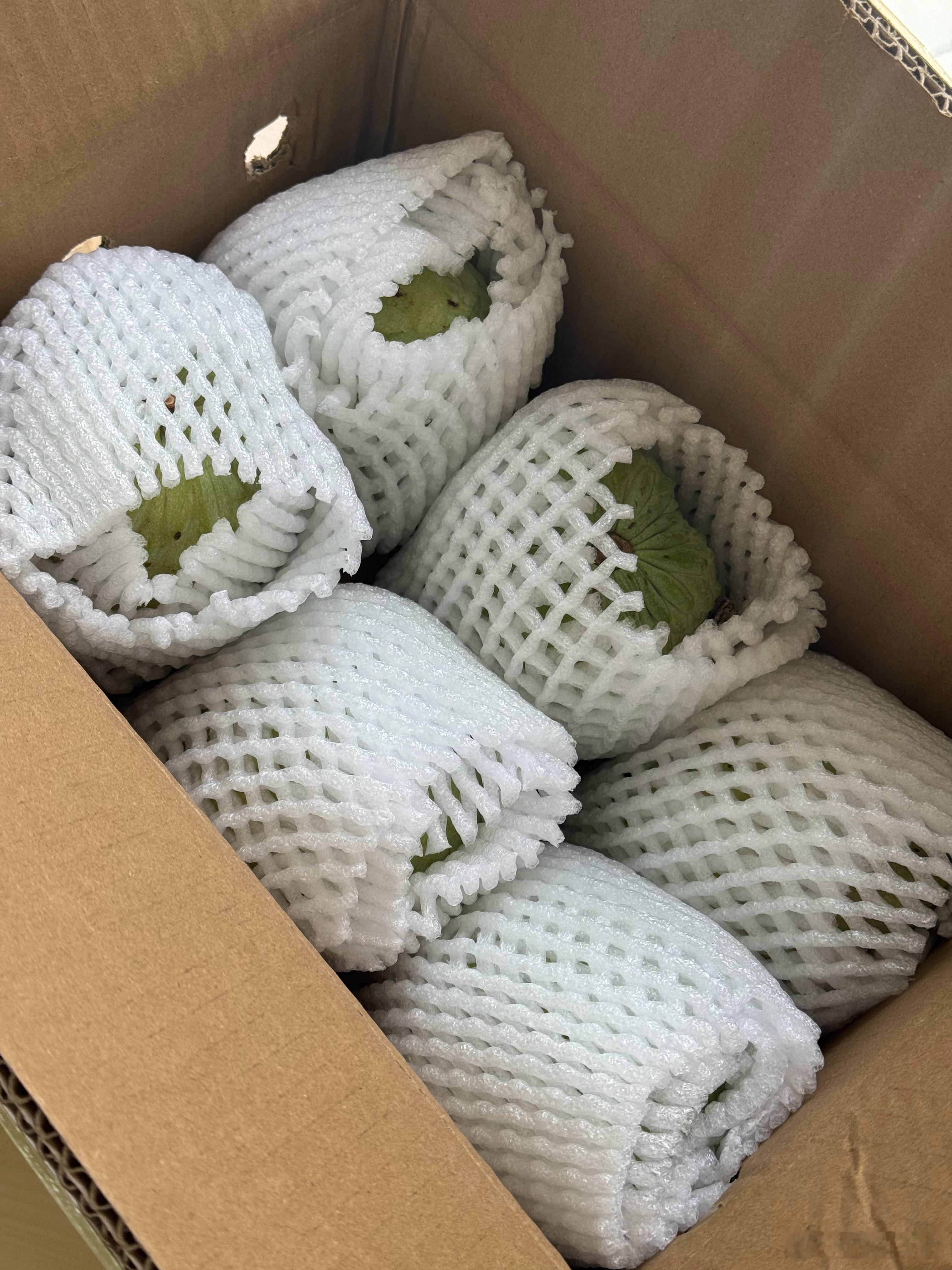 果园寄的释迦果已经到了,还邦邦硬,看着还不错哦,等几天软了再试~
