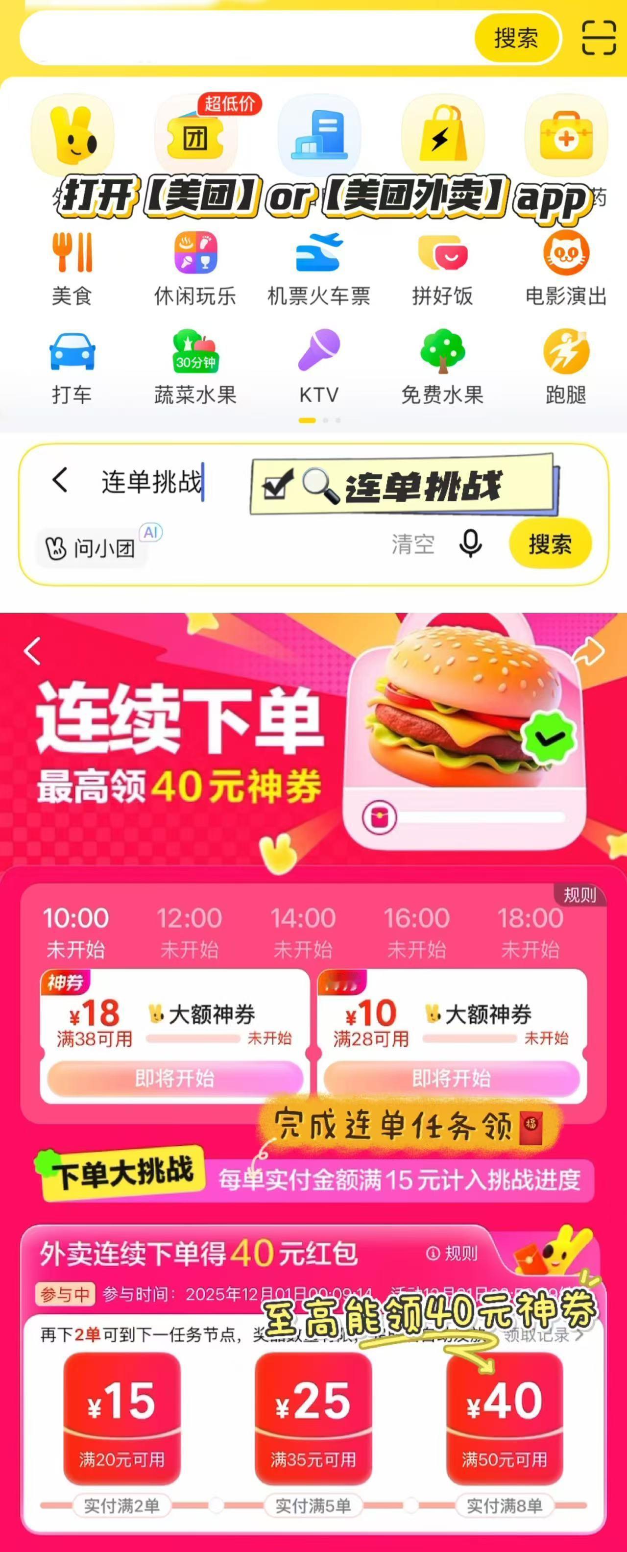 卷卷的城市探险记更新啦,这次发现了个隐藏福利点位🗺️目的地:美团外卖APP暗号:搜“连单挑战”我和朋友分别都报名了,连续下单把任务跑完后,最高40元神券直接解锁,简直像游戏里突然爆了一件金装。吃得很开心,实付价格更是感人本次探险圆满成功,强烈推荐大家来打卡!美团外卖40元神券是谁在领
