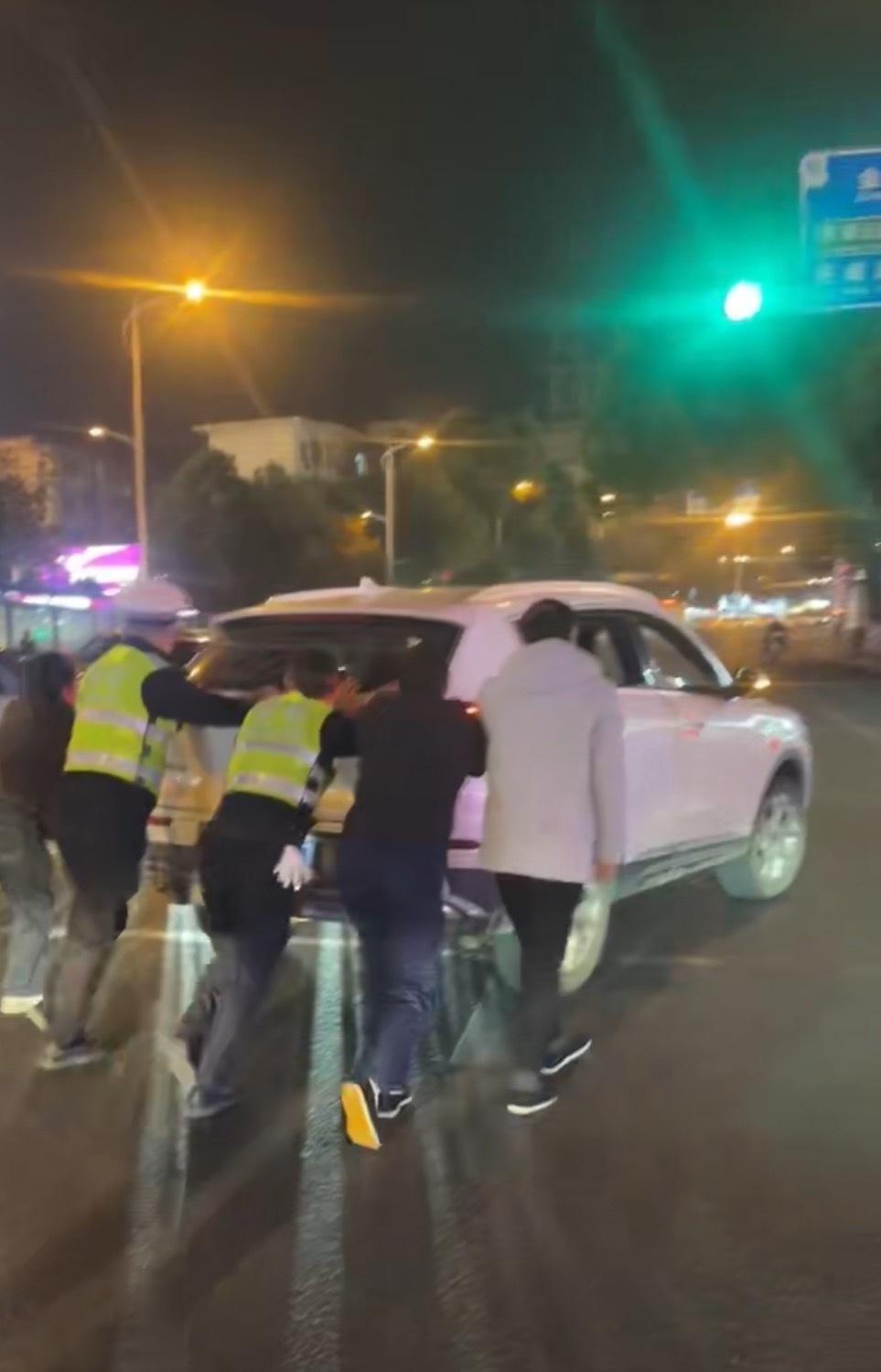 【小车故障“趴窝” 警民合力推车解困】交警正能量 12月1日20时许,益阳交管赫山大队民辅警巡逻至桃花仑路沃尔玛附近时,发现前方车辆通行缓慢、出现拥堵。经查看,原来是一辆白色轿车因突发故障,停滞在道路中央。执勤民辅警立即上前了解情况,随后与驾驶员合力徒手将车辆推至路边安全区域,及时消除了交通安全隐患,道路也很快恢复了畅通。文明交通礼行天下 @湖南交警 @湖南公安