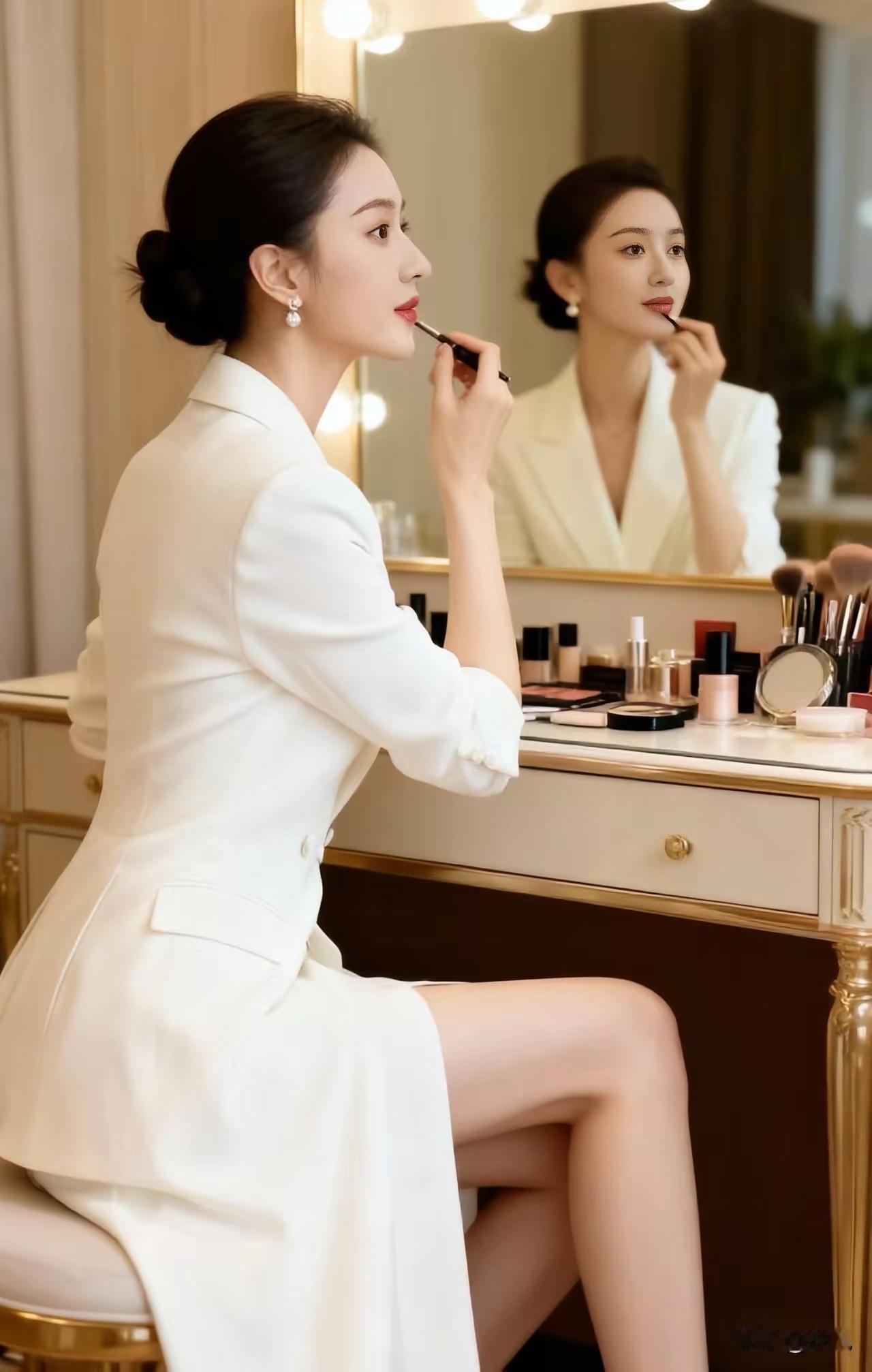 优雅白领的精致日常,镜前妆容的完美呈现。