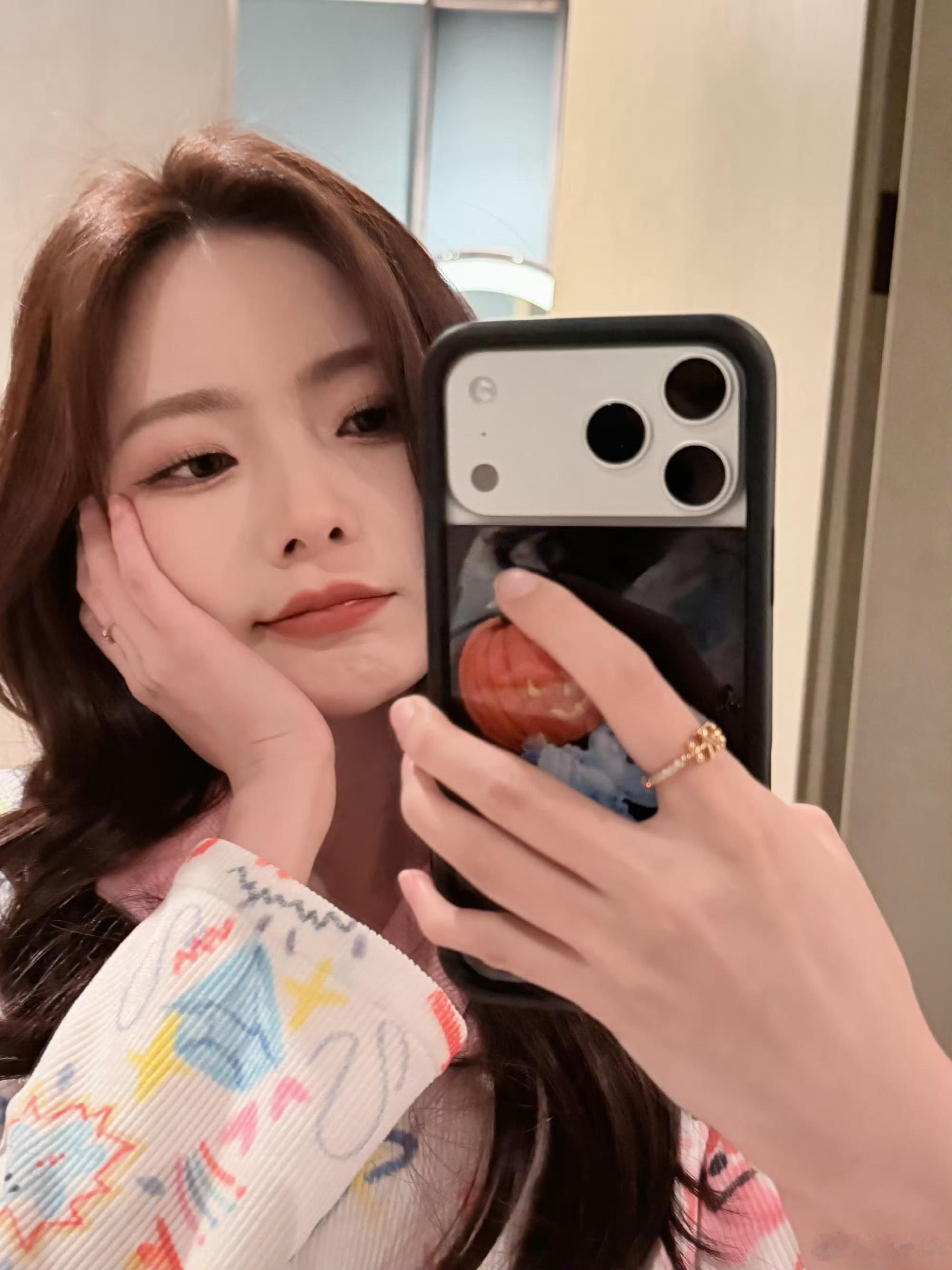 陈卓璇对镜拍新鲜的对镜拍来啦🤳粉粉的睡衣看起来软乎乎,搭配低饱和妆容显得好温