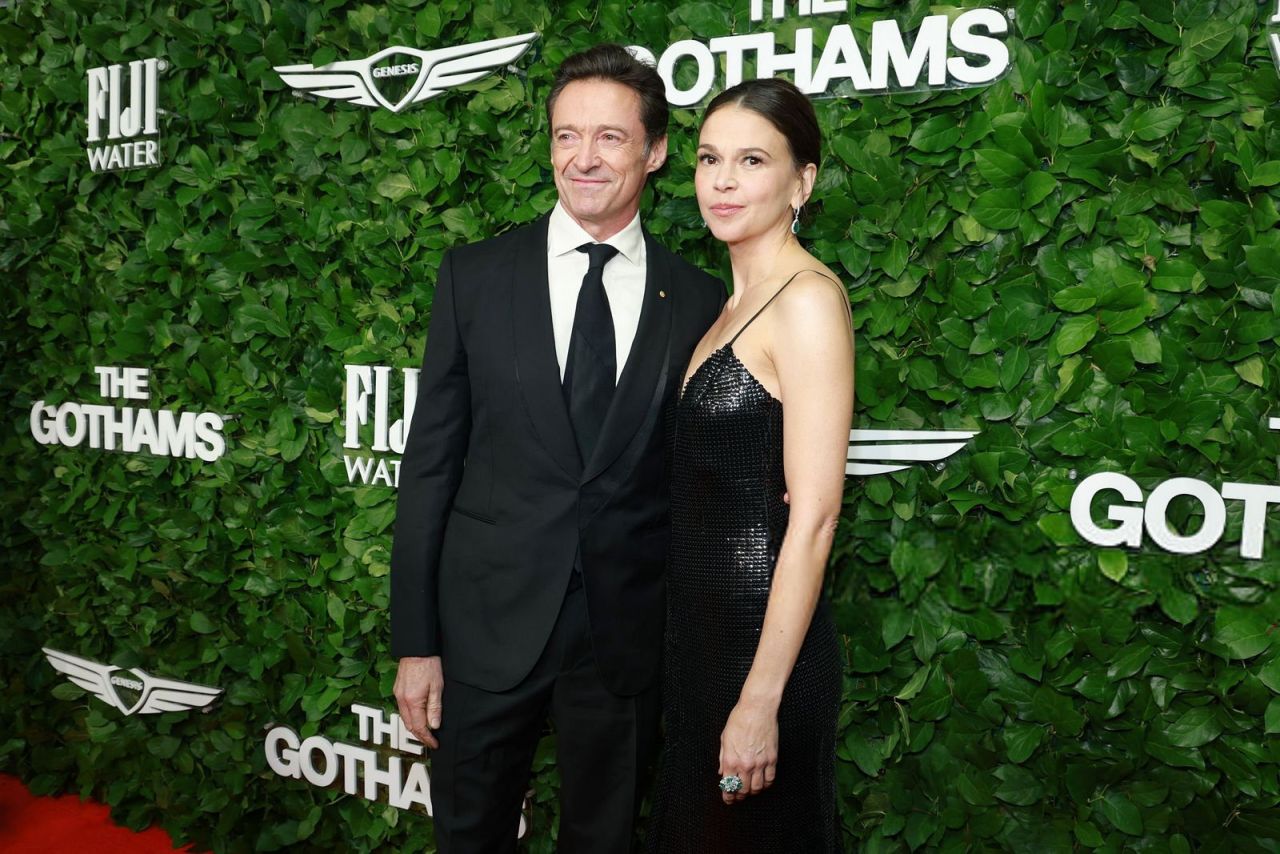 曾以深情爱妻形象深入人心的“#狼叔#”#休杰克曼#,今夜身旁已换了新面孔。 📍地点:纽约 🗓️时间:2025年12月1日 他与 Sutton Foster 并肩亮相2025年哥谭奖红毯,一身经典黑西装依旧风度翩翩,搭配的却是她身上那袭低调闪烁的黑裙。光影交织间,是恰到好处的默契,却也仿佛无声诉说着故事的更迭。 所谓人设,终是镜花水月;唯有此刻衣香鬓影,真实可触。当旧日童话褪色,红毯上的黑色礼服装束,倒成了最体面的告别与开场。