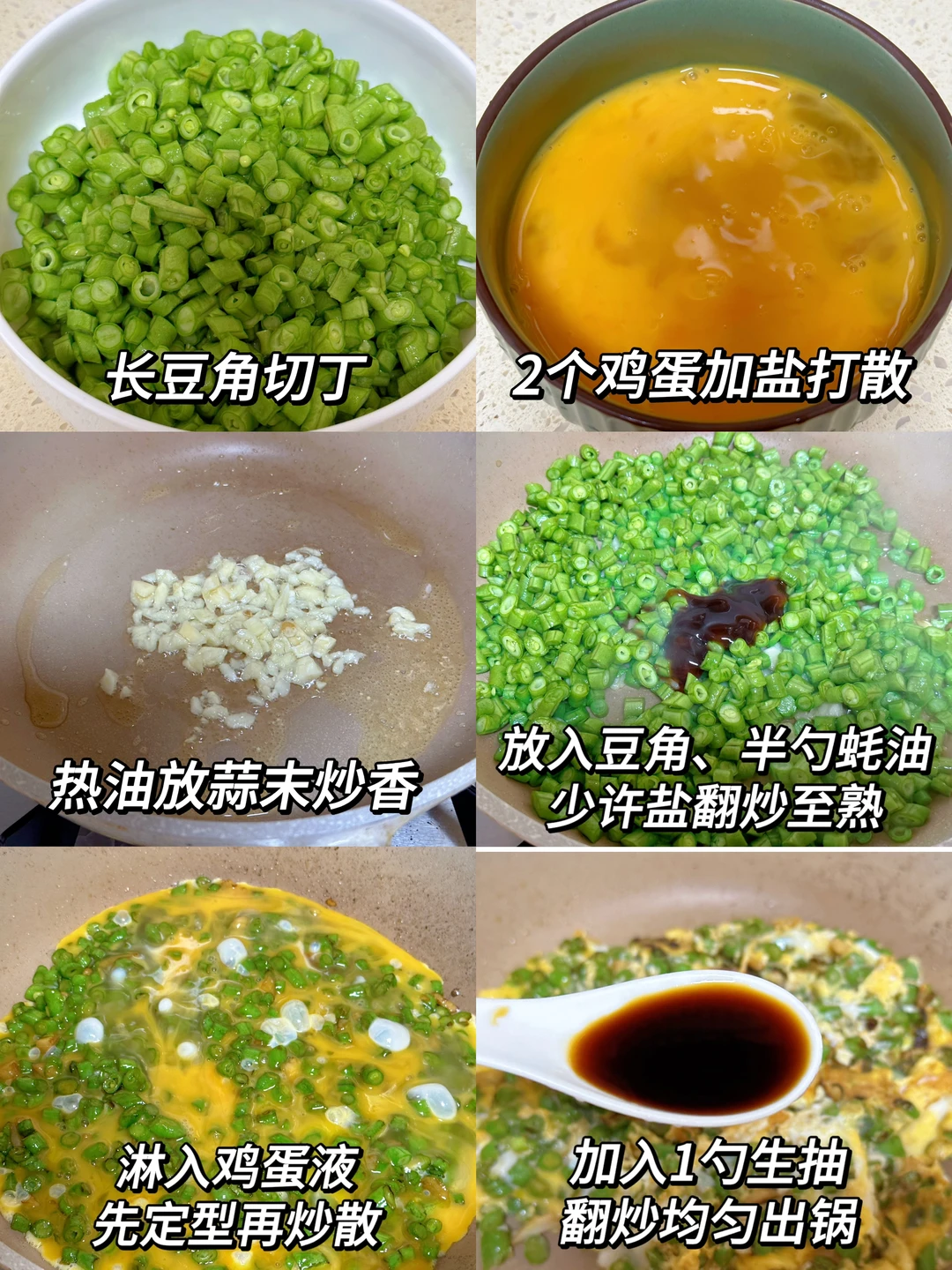 姐妹们,今天给大家分享一道巨巨巨好吃~鲜香的豆角炒鸡蛋真的是香迷糊了!鲜嫩脆爽,鲜香入味,鸡蛋煎的焦香的,豆角脆嫩,配上糙米饭,妥妥的减脂餐,味道嘎嘎的香,好吃到停不下来了!越吃越香,百吃不腻,吃完超有满足感,一上桌就秒光,做法简单,姐妹们赶紧试试吧~ 🥗食材:长豆角、鸡蛋、蒜末 🥘做法:如图所示~