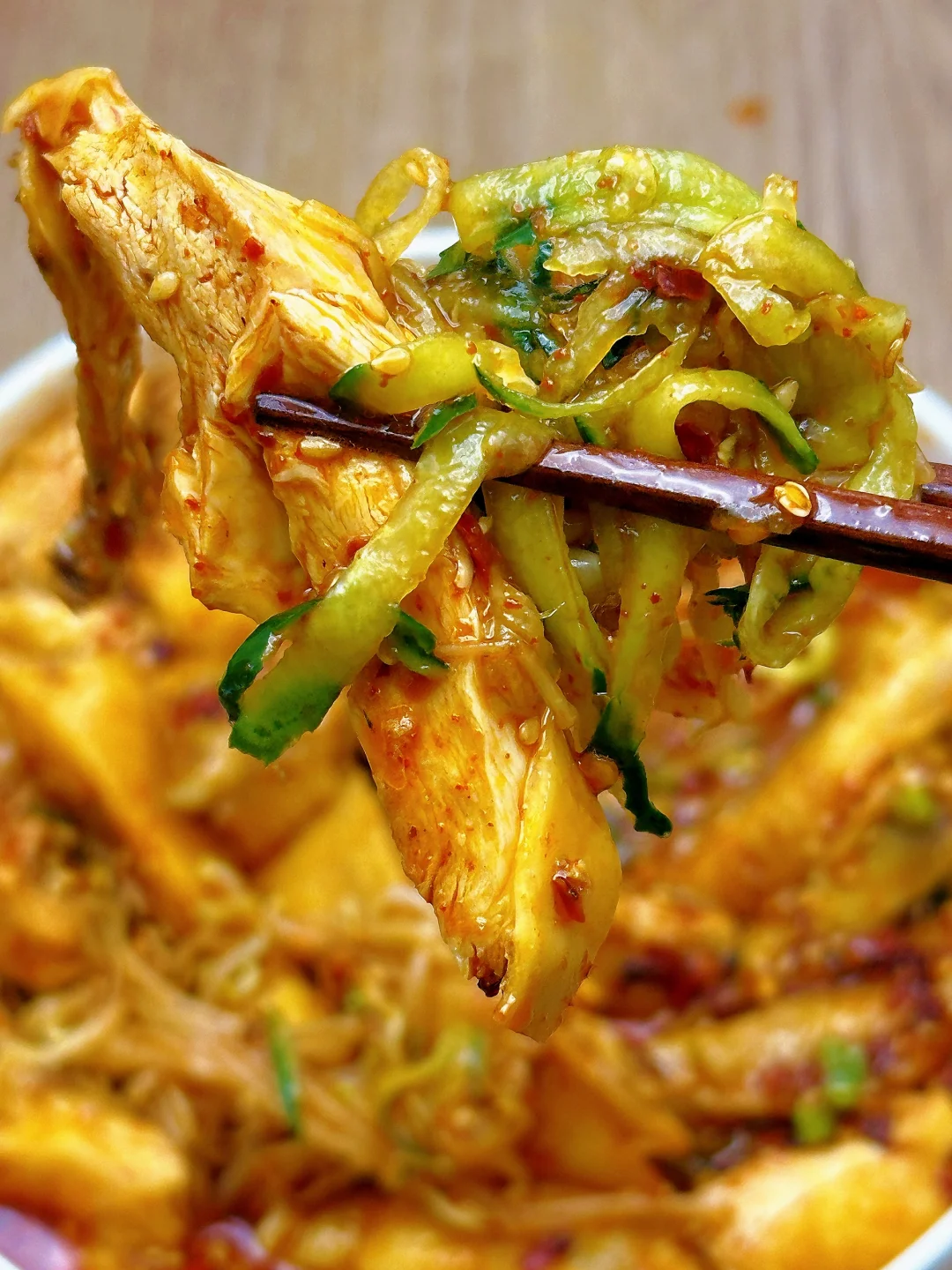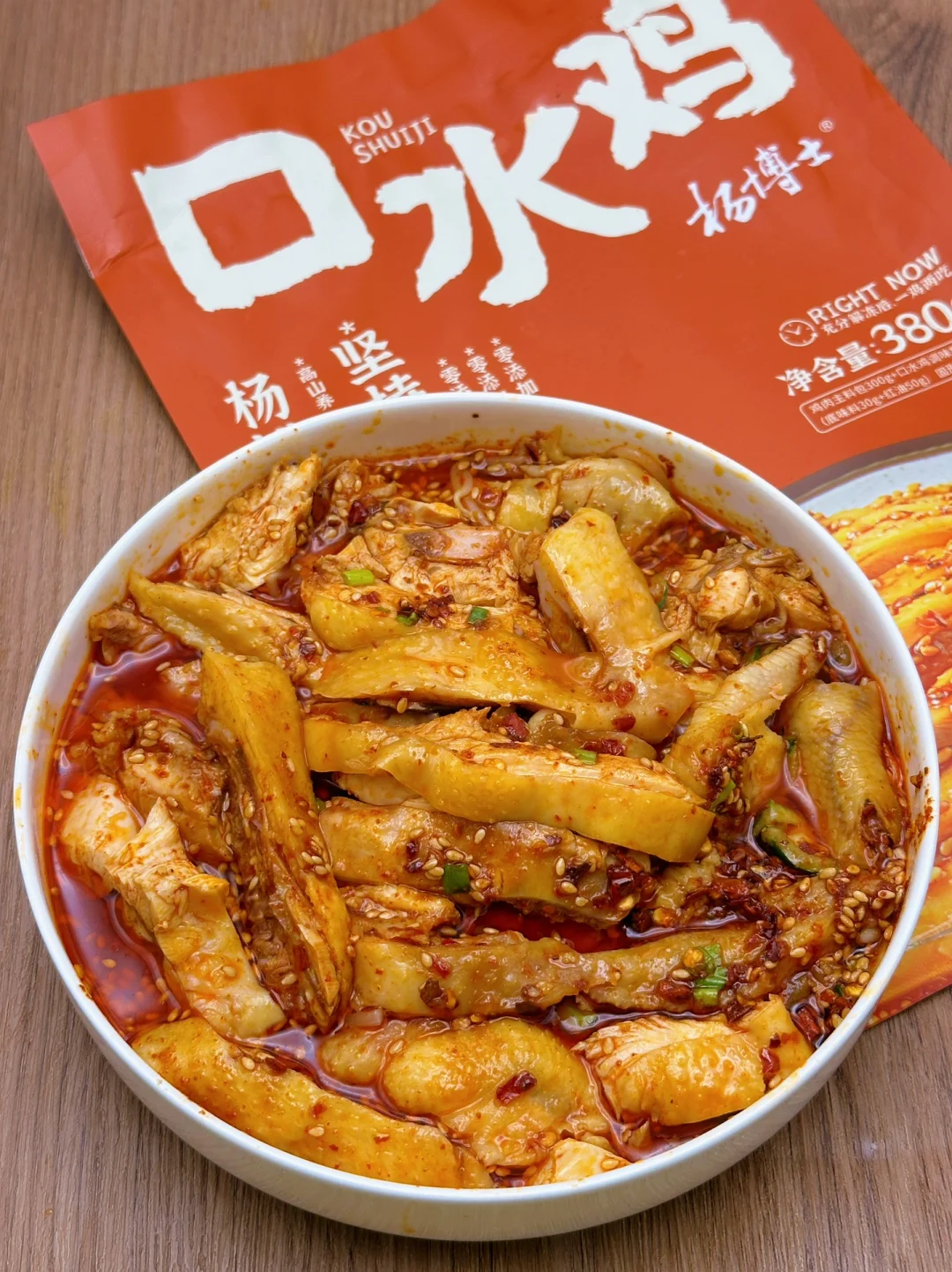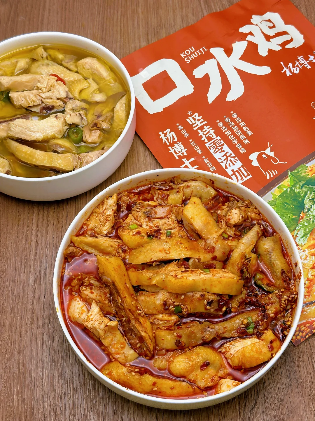 终于明白为什么叫口水鸡了,这样做真的太好吃了,从冰箱里拿出来的一瞬间,黄瓜的清香和麻辣的香气真是让人止不住流口水!原来减脂餐还能这样吃,直接用杨博士口水鸡下面放青瓜丝➕豆芽打底太好吃了~这次买了2个口味,我个人觉得藤椒鸡更好吃,我妹妹更喜欢口水鸡,开袋即食很方便,非常适合夏天吃,而且藤椒汤汁还可以拌面条,看配料表都是干干净净,原生态的散养土鸡肉质细腻,鲜嫩多汁,特别香,而且整鸡高温杀菌浸煮后过冷水,煮出鲜味,配上特制的口水鸡料包,口味恰到好处(辣椒还是精心挑选的3种辣椒)香气浓郁,麻辣鲜香好吃的完全停不下来!藤椒鸡是有一点点麻~