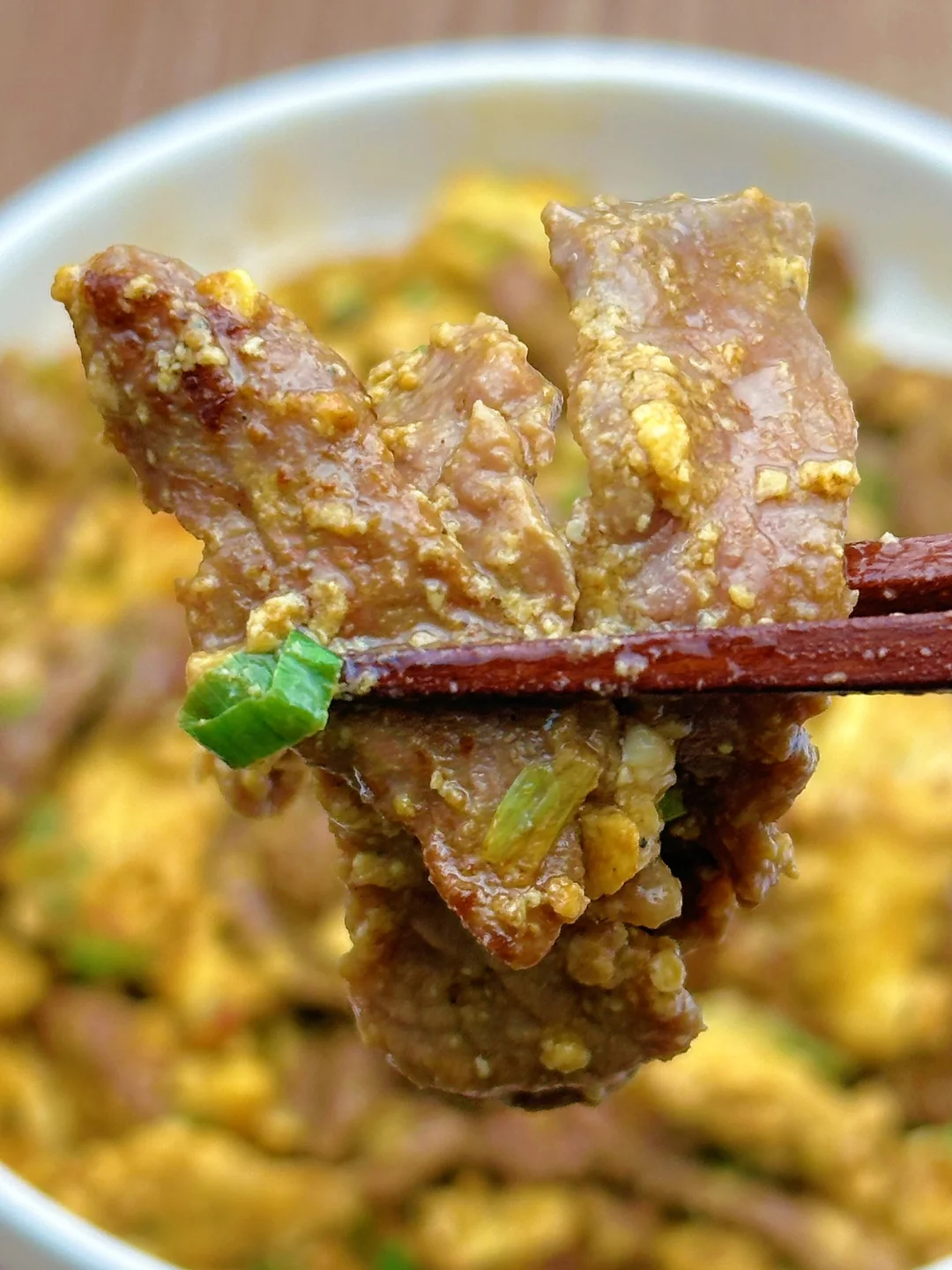 低卡高蛋白减脂餐呀[哇R]姐妹们滑蛋牛肉这样做真的好吃到舔盘!!鸡蛋嫩滑嫩滑的,牛肉鲜嫩多汁,一点都不柴[哇R][哇R]而且牛肉鸡蛋都是低卡高蛋白质,非常适合减脂期的姐妹们!姐妹们赶紧安排啦… 🥗食材:原切肥牛、鸡蛋、葱花 🥘步骤:如图所示~
