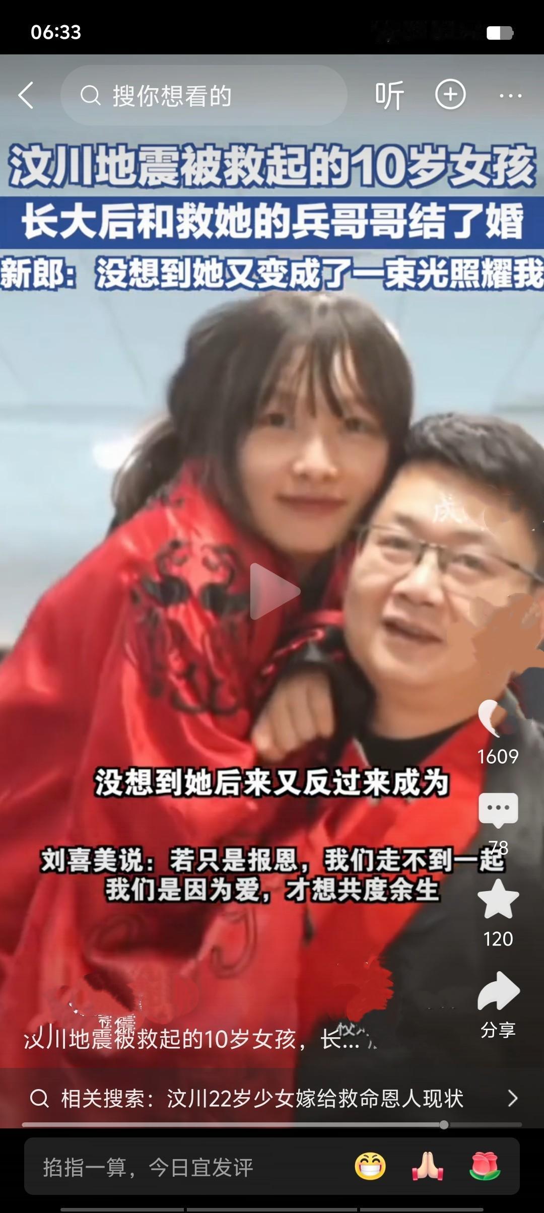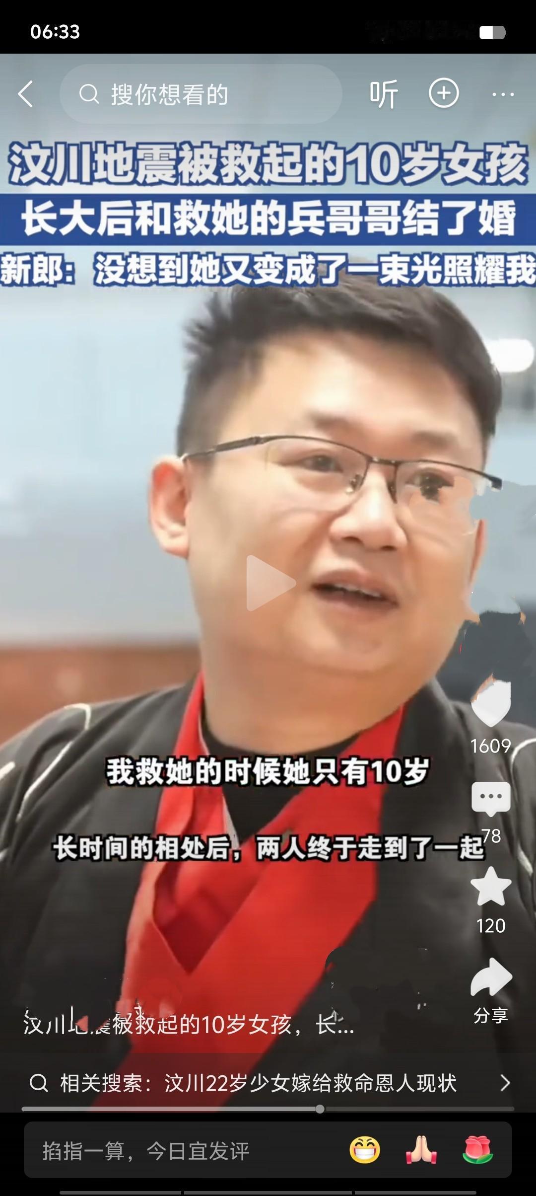 2008年汶川地震,女孩被困废墟,军人冒险将其救出,这份生死之交深埋心底。多年后,女孩成长为独立女性,与施救军人重逢相知。2025年,他们携手步入婚姻殿堂,这场跨越生死与时间的爱情,让无数人见证了爱的奇迹与力量。汶川地震