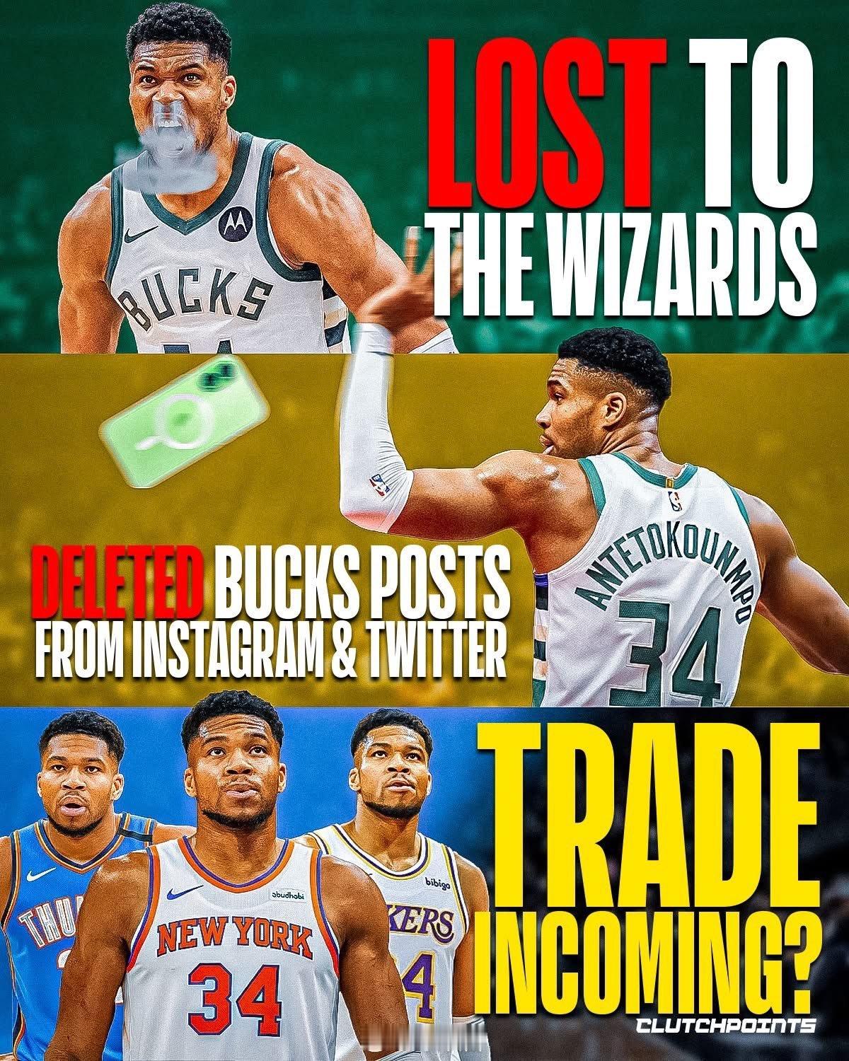 雄鹿输给正在摆烂的奇才之后,字母哥一气之下删掉了个人社交媒体上所有的雄鹿相关内容
