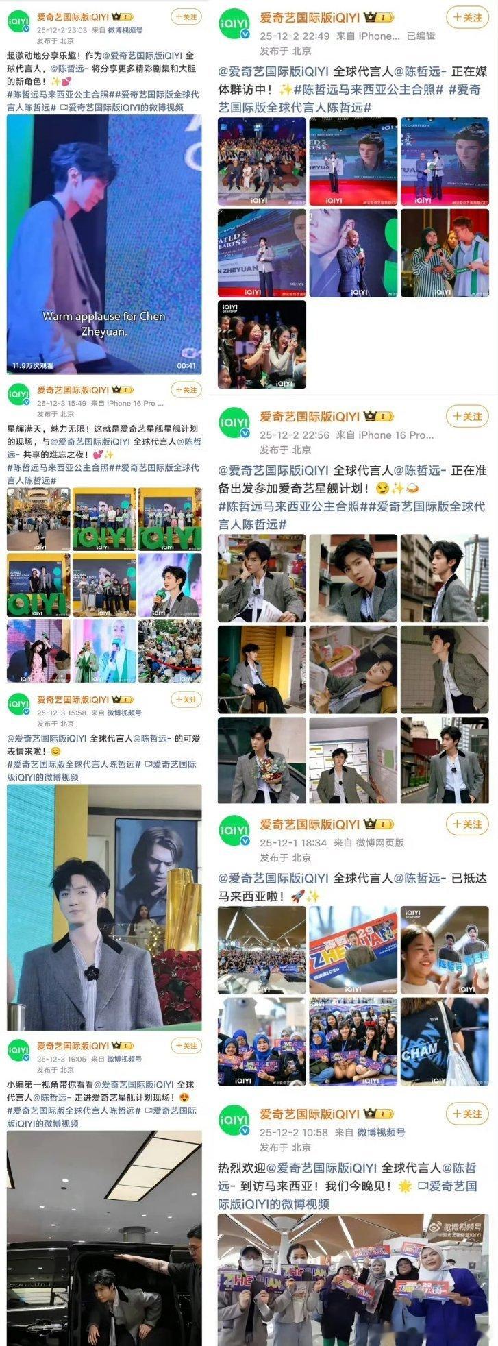 爱奇艺国际版连续3天发了8条微博夸陈哲远这次海外活动,海外人气真的很顶🔝看得出对效果是真的很满意陈哲远
