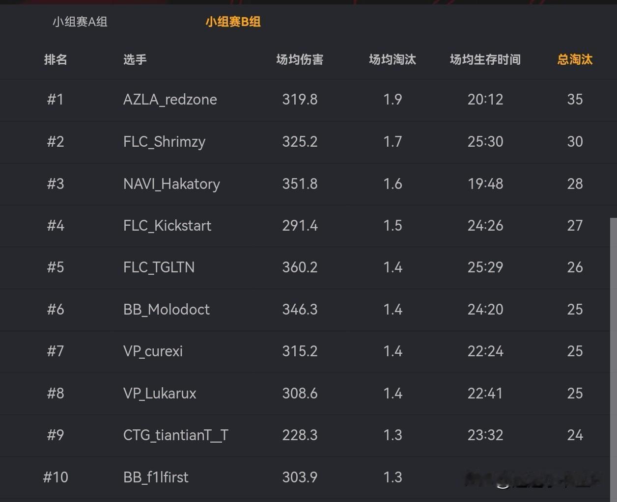 今晚GSW回家! PGC全球总决赛B组小组赛三天比赛结束! FLC、BB、VP、T5、BGP直接晋级总决赛 CTG、PeRo将参加复活赛,GSW回家了! CTG第六名参加复活赛有点可惜,到了复活赛16个队伍重新洗牌,又是只有5个名额 PeRo也算是惊险晋级复活赛阶段,上半场打的还可以,后面就开始哑火了,复活赛加油 GSW今天是一直在猛猛追分,如果最后一波直接去顶CTG会不会有更好的结果,可惜没有如果,周品言再次大赛一轮游,明年还能见嘛 AL最后一把12杀无效吃鸡真的可惜,一切都来的太晚了,就差FLC不给的那一分,赛后得知结果的太空流下不甘的泪水,9杀的海马斯今年PUBG也结束了!