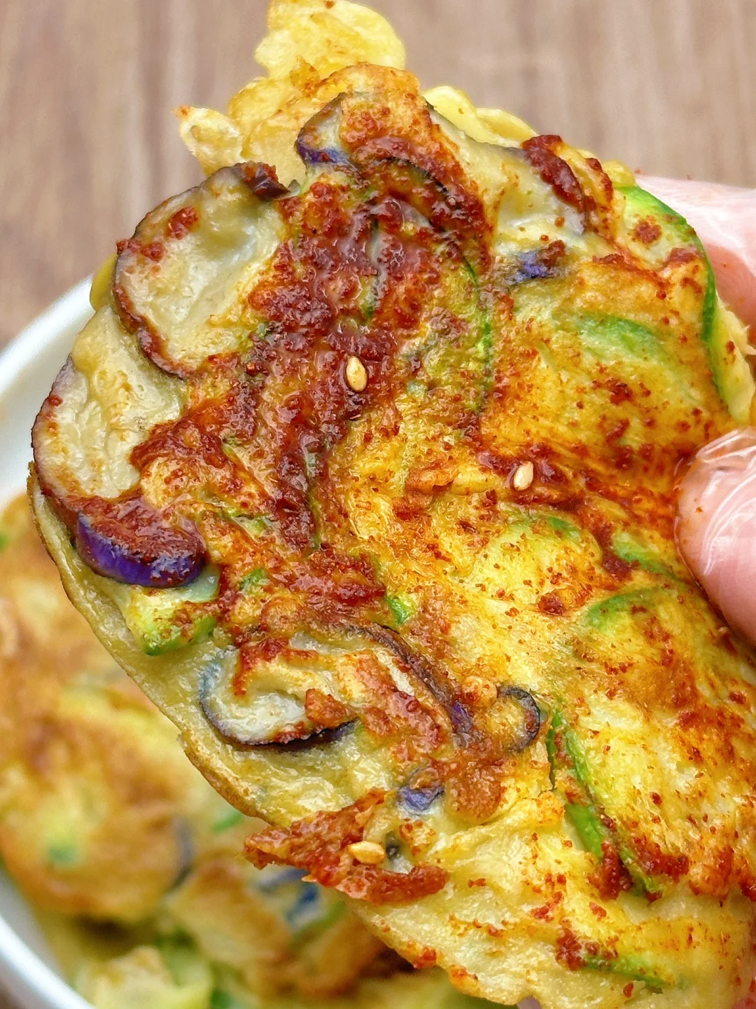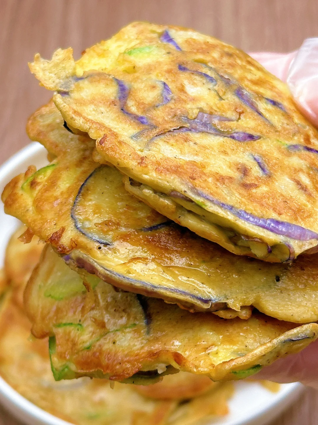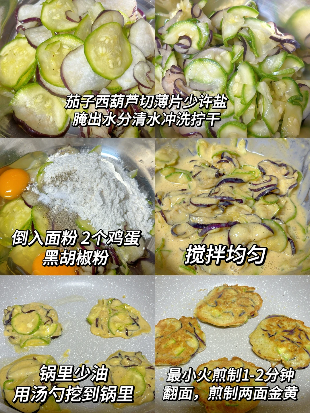 减脂期的姐妹们一定要试试这香嫩的茄子西葫芦鸡蛋饼,真的是香迷糊啦!!巨巨巨好吃营养美味,而且热量也不高,配上万能的酱汁,真的好吃到停不下来了!一口咬下去软糯香嫩,香辣美味,对减脂期的姐妹很有好,做法简单,姐妹们快去试试吧~全家人吃完都在夸 🥗食材:茄子、西葫芦、鸡蛋、面粉 🥘做法:如上图集中所示~