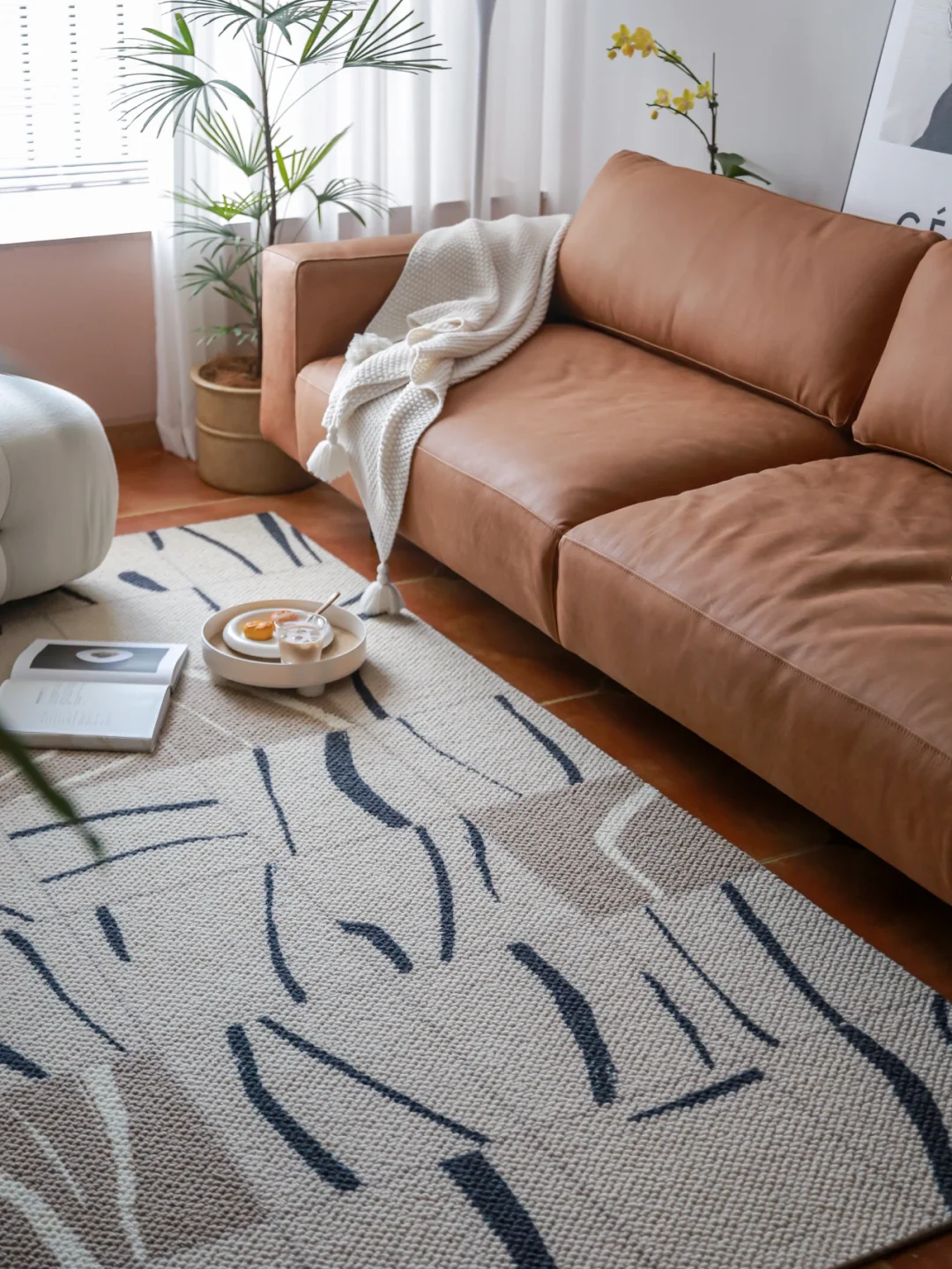 铺上了新中式风的地毯后,整体调性好吻合🟤 1.6米*2.3米选的尺寸刚刚好!地毯是羊毛质地,光脚踩着脚感舒服。沙发靠背后有20厘米宽的边缘,摆放台灯、装饰画、小植物无比合适!