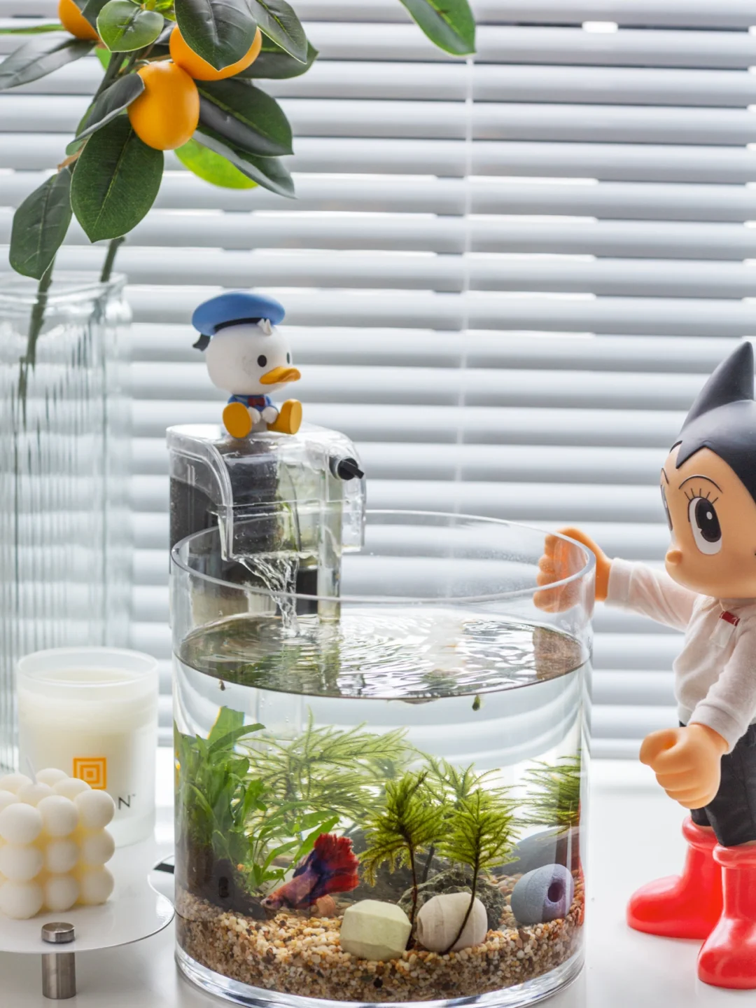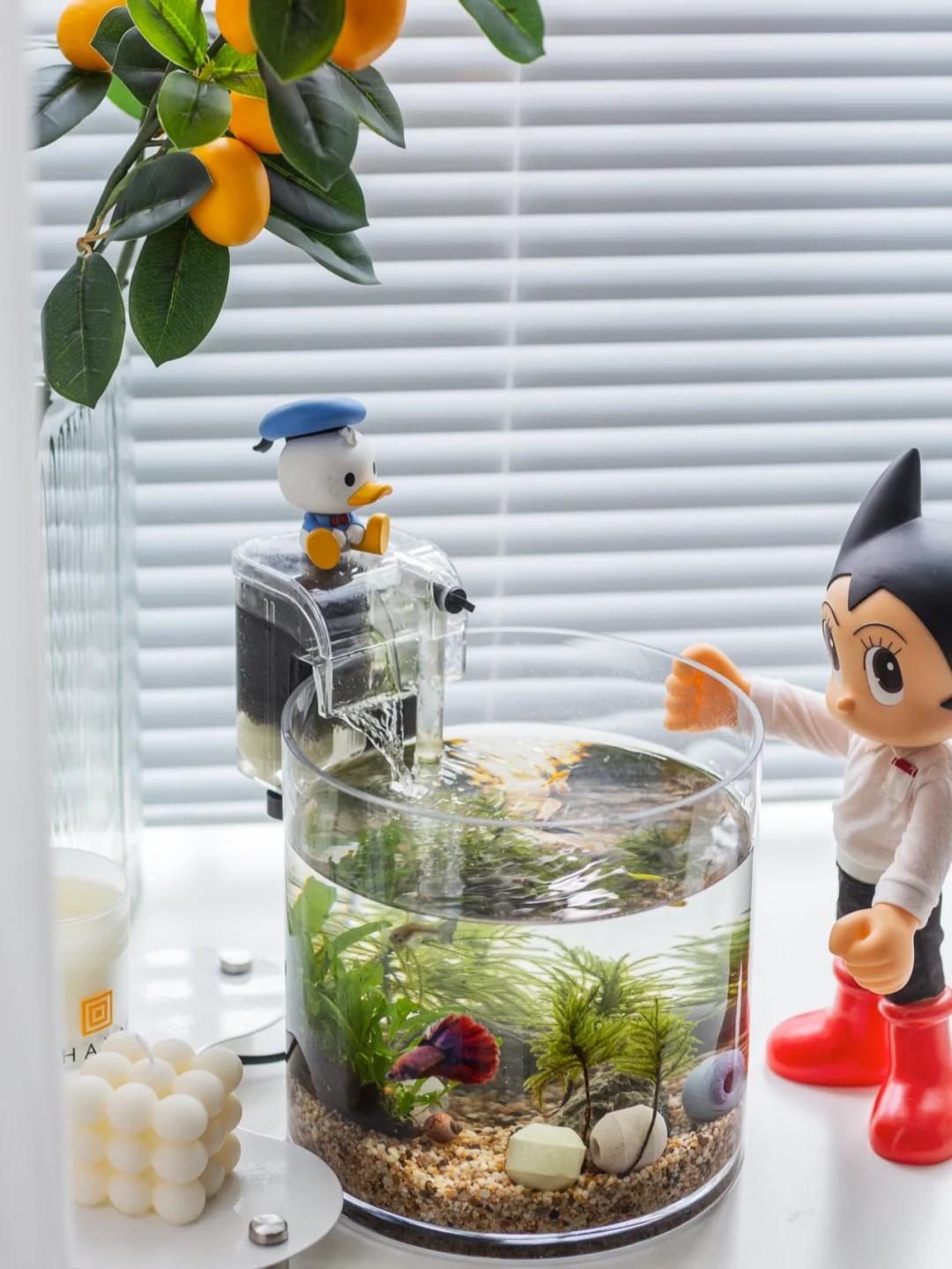 很多朋友喜欢我的鱼缸,其实是搬家时好友送的一套,带我去花鸟市场自己挑选。慢慢的,我把鱼缸也变成家里的一道风景线,随手拍也是美好。