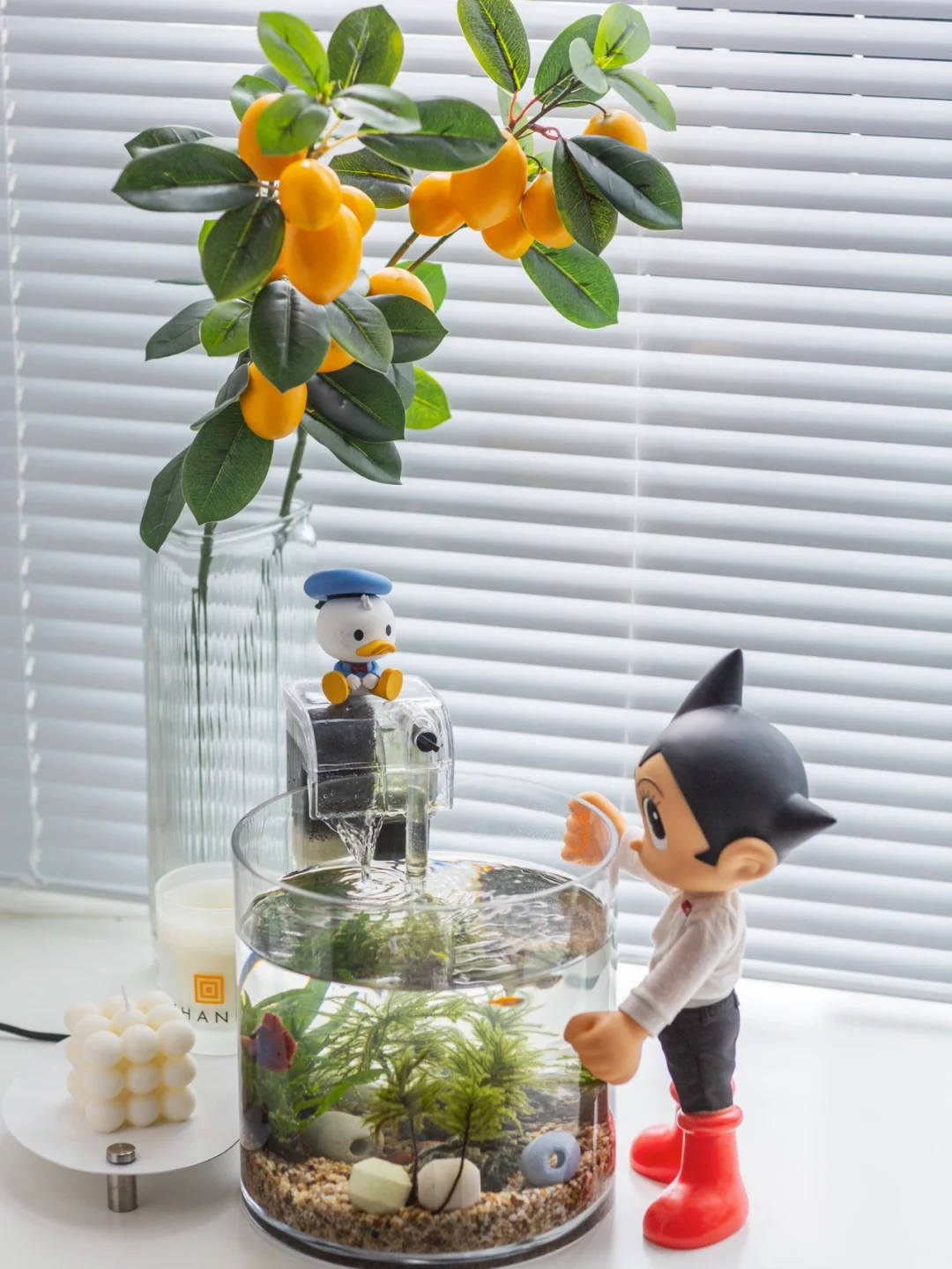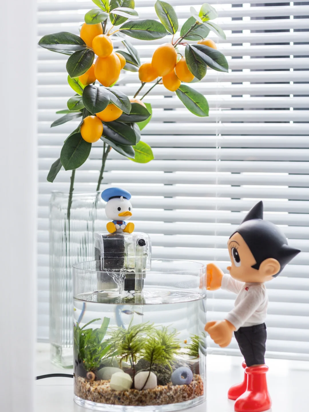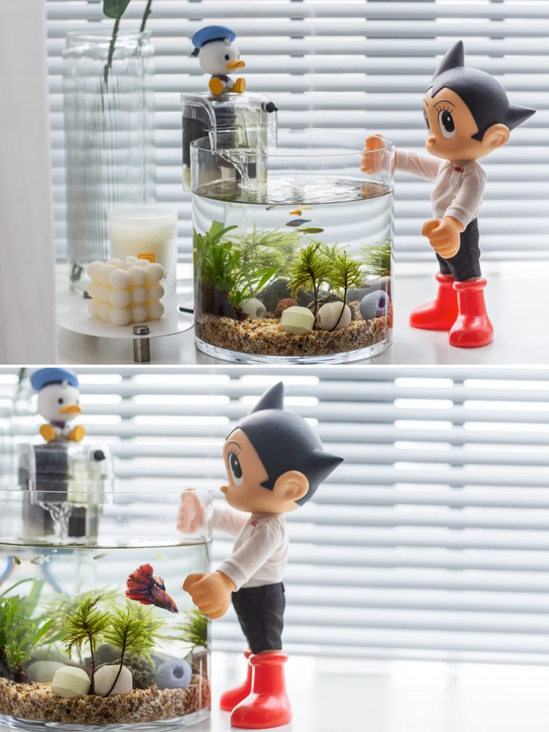 米老鼠和小黄鸭去休息啦,这周换成阿童木与唐老鸭来守护鱼儿们。