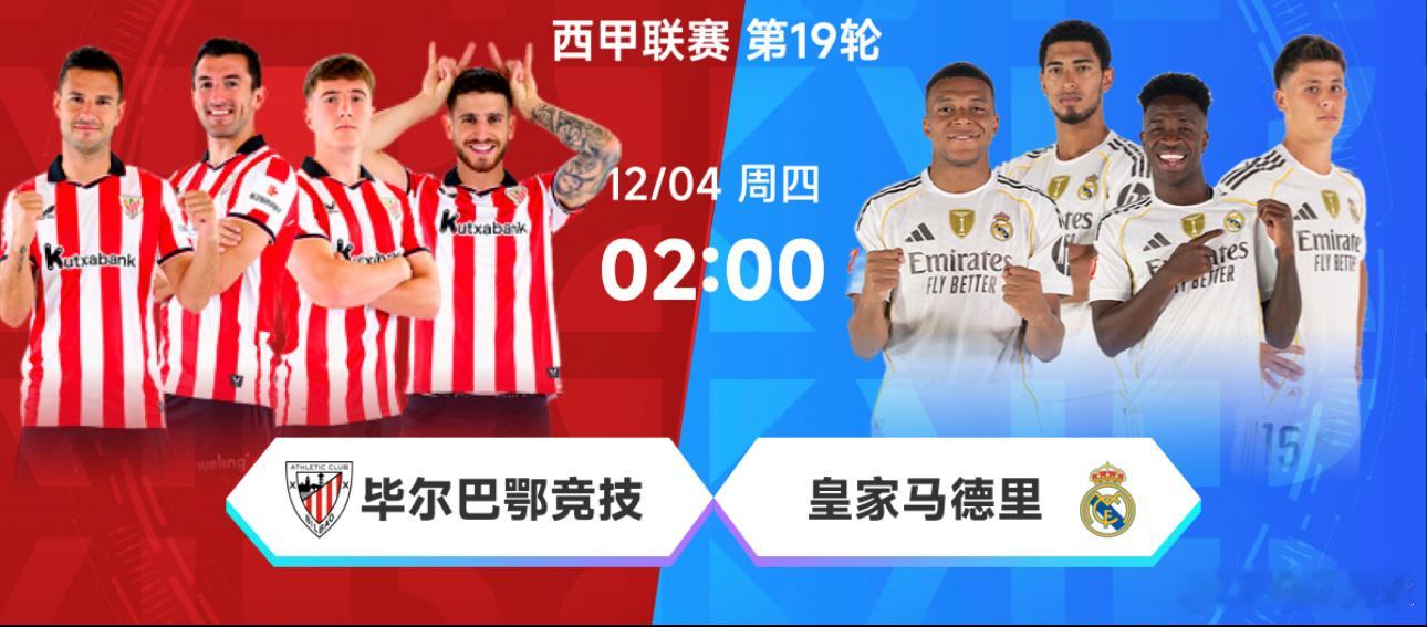 12月4日凌晨02:00,西甲联赛将提前上演第19轮一场极具看点的对决,毕尔巴鄂