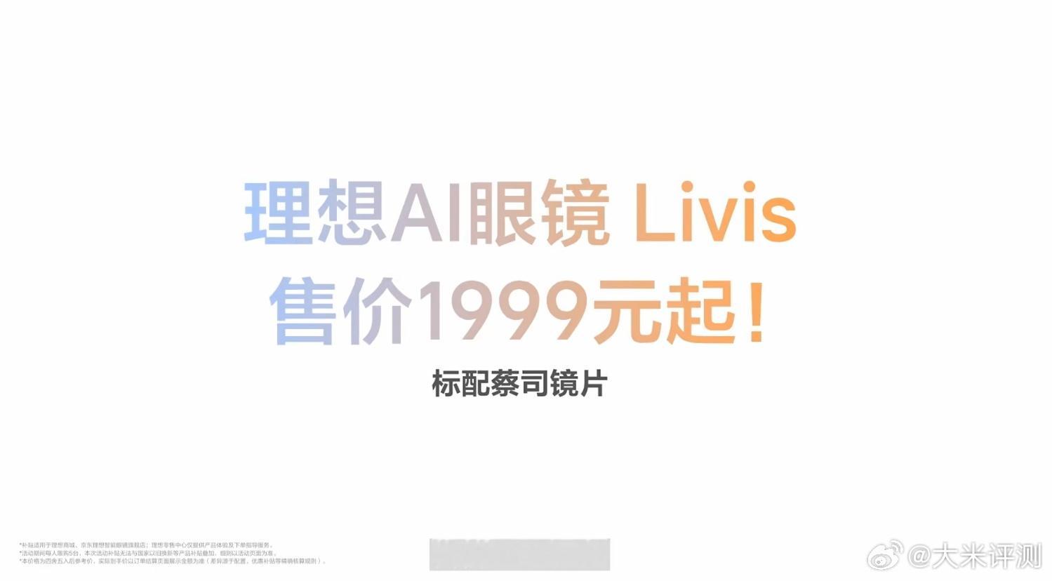 理想AI眼镜 Livis,标配蔡司镜片,1999元起(支持国补1699元)。36g重量,18小时续航,标配无线充电盒,可以进行理想汽车车控,第一视角照片/视频/Live Photo/理想同学语音助手。理想AI眼镜车控功能 理想AI眼镜Livis