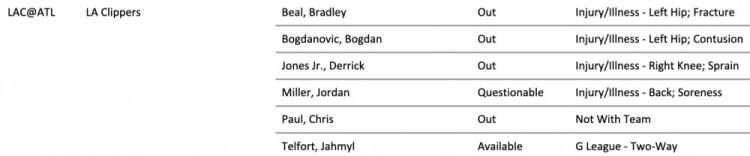哈哈!快船离谱到家了真是! 对阵老鹰伤病报告:保罗缺阵,原因是未随队(NotW