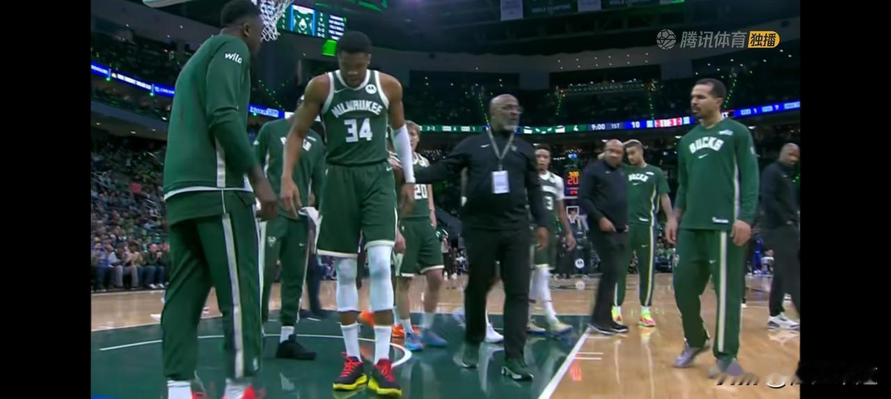字母哥无对抗倒地受伤返回更衣室,明显是不想打了! Shams都曝出字母哥将被交易基本上已成定局! 所以字母哥阿德托昆博在对阵活塞的比赛中,象征性的出场了3分钟,以自己脚崴为由,彻底不想打了,径直走向了更衣室! 看字母哥的走路状态,应该是没有什么大碍! 今天雄鹿面对东部第一的活塞凶多吉少,估计在字母哥走了之后将彻底进入重建!