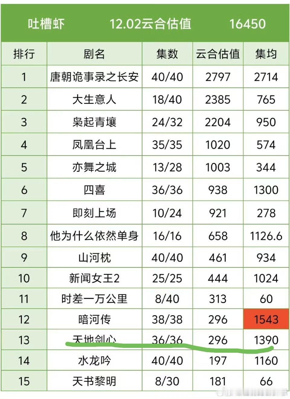有的剧比想的还要扑啊!集均1500w都没达到!看到yxh发各种第一,还以为播的很