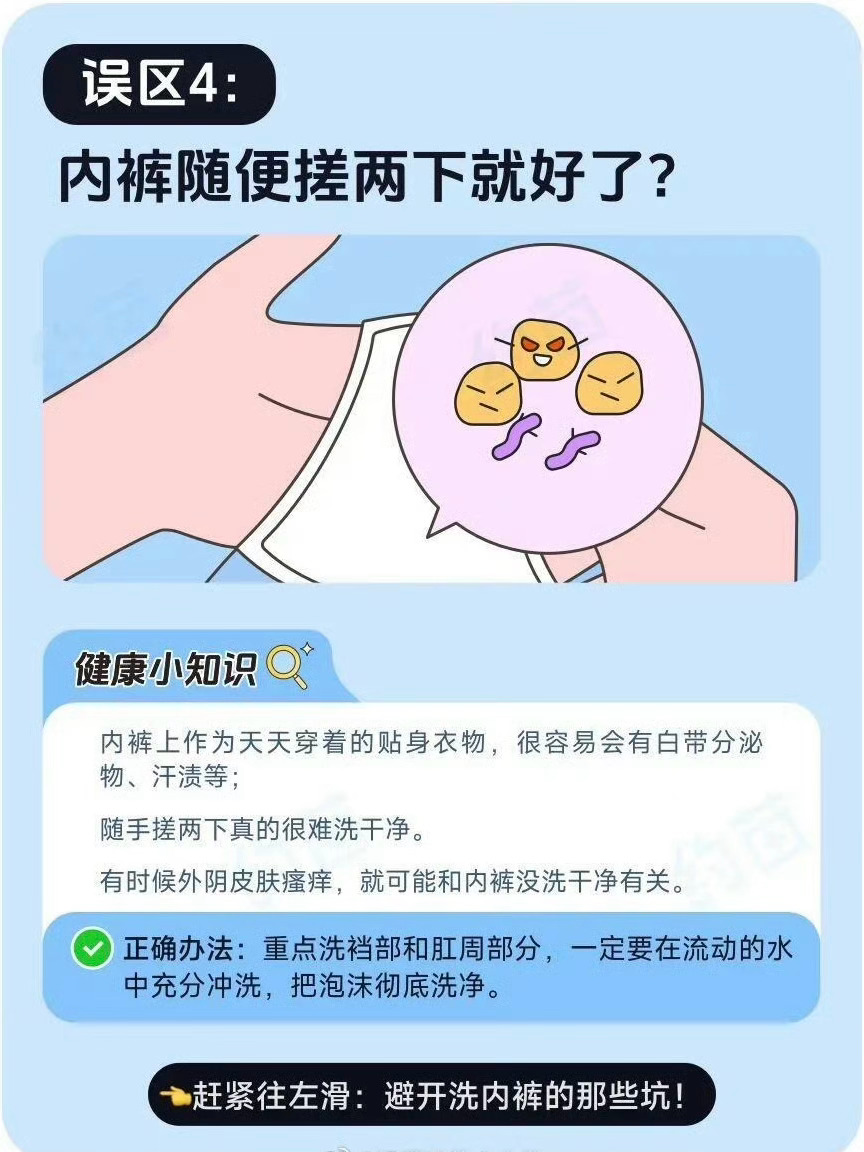 再也不敢洗完澡就洗内裤了 洗完澡就着浴室水汽洗内裤?快打住!潮湿环境会让细菌加快繁殖速度,手洗后没及时晾干,等于培养细菌…所以专业的事情还是得交给专业的机器做!!!