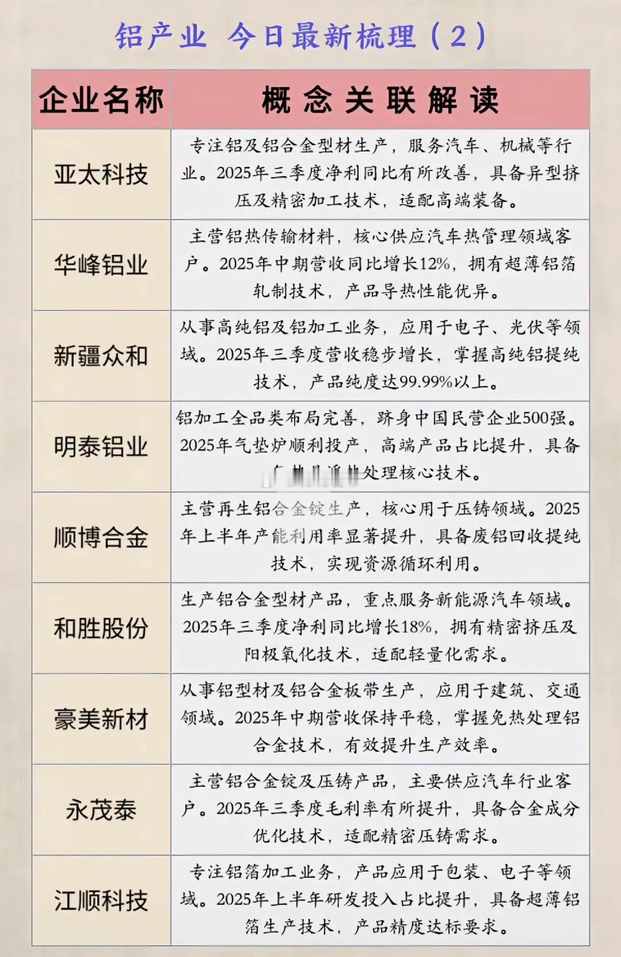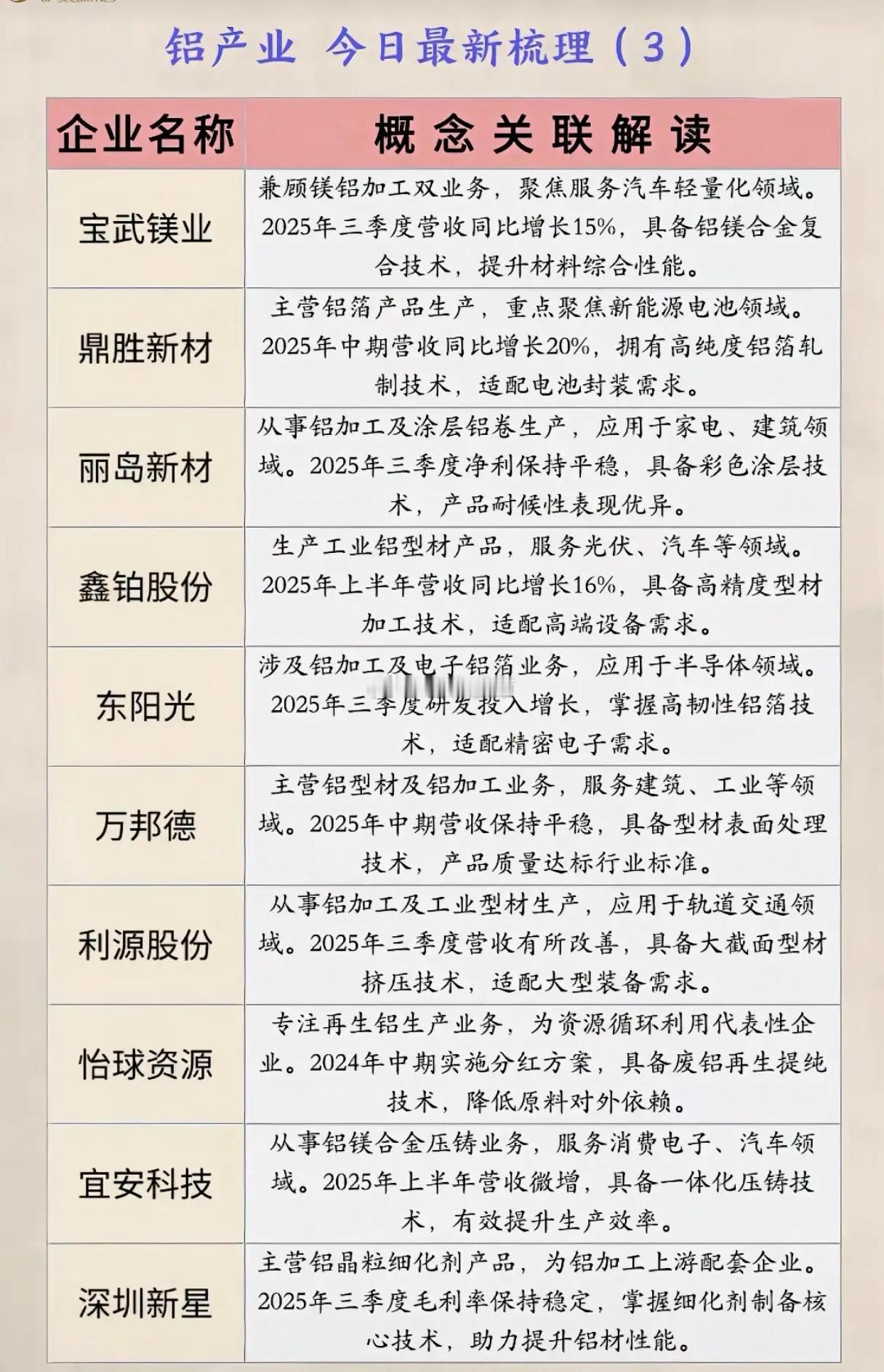 铝产业谁在“技术+盈利”双领跑?云铝、中铝凭啥成行业标杆?铝产业的竞争,早已从“产能比拼”转向“技术+盈利”的双维度较量——云铝股份作为绿色水电铝代表,前三季度净利增15.14%,还拿下欧盟碳关税豁免;中国铝业靠全链条布局+自主600KA电解槽技术,2024年净利直接飙涨95.2%,吨铝电耗低于行业均值。细分赛道也藏着“隐形强者”:南山铝业航空板拿了国际认证,三季度毛利率26.63%;和胜股份聚焦新能源汽车轻量化,净利增18%;顺博合金靠再生铝技术,把废铝变成高价值原料。就连上游的深圳新星,也凭铝晶粒细化剂技术卡住了加工环节的“性能命门”。这些企业的共性很清晰:要么靠绿色能源、资源自主压低成本,要么用高端技术抢占新能源、航空等赛道。从水电铝的政策红利,到再生铝的循环风口,铝产业的“优等生”们,早把“技术壁垒”变成了“盈利护城河”。