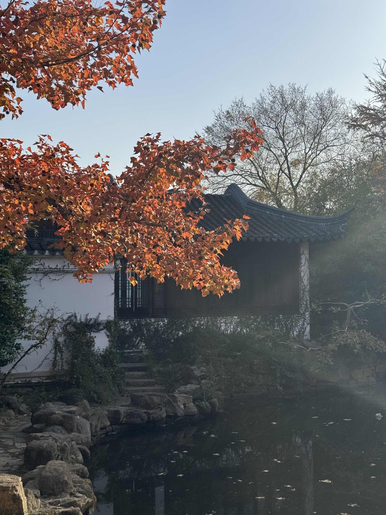 一张照片分享秋色秋意渐浓,红叶映古宅,静谧江南水乡。