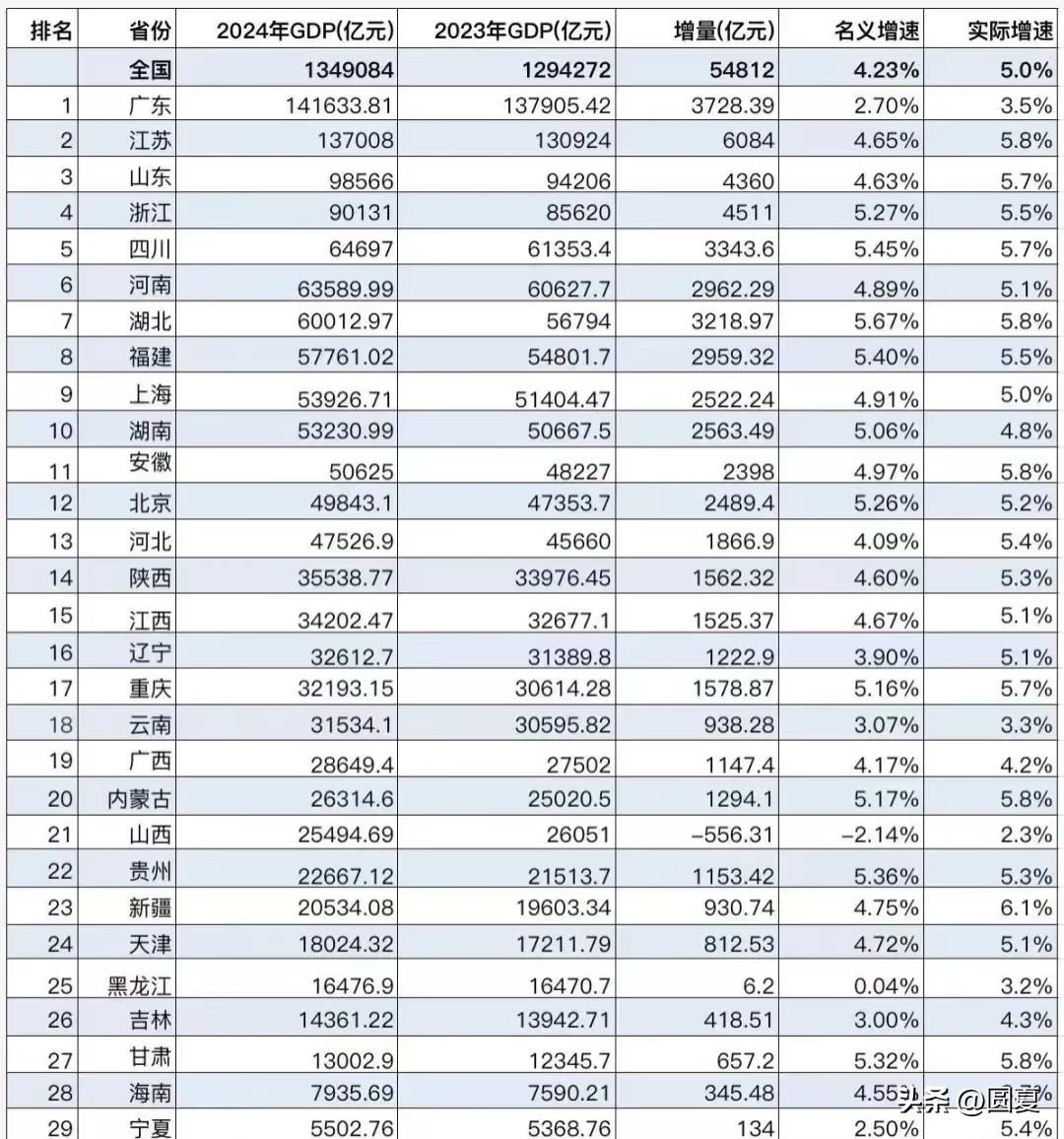 从GDP增速来看,前十名省份分别为:西藏,新疆,江苏,湖北,安徽,内蒙古,甘肃,山东,四川,重庆。