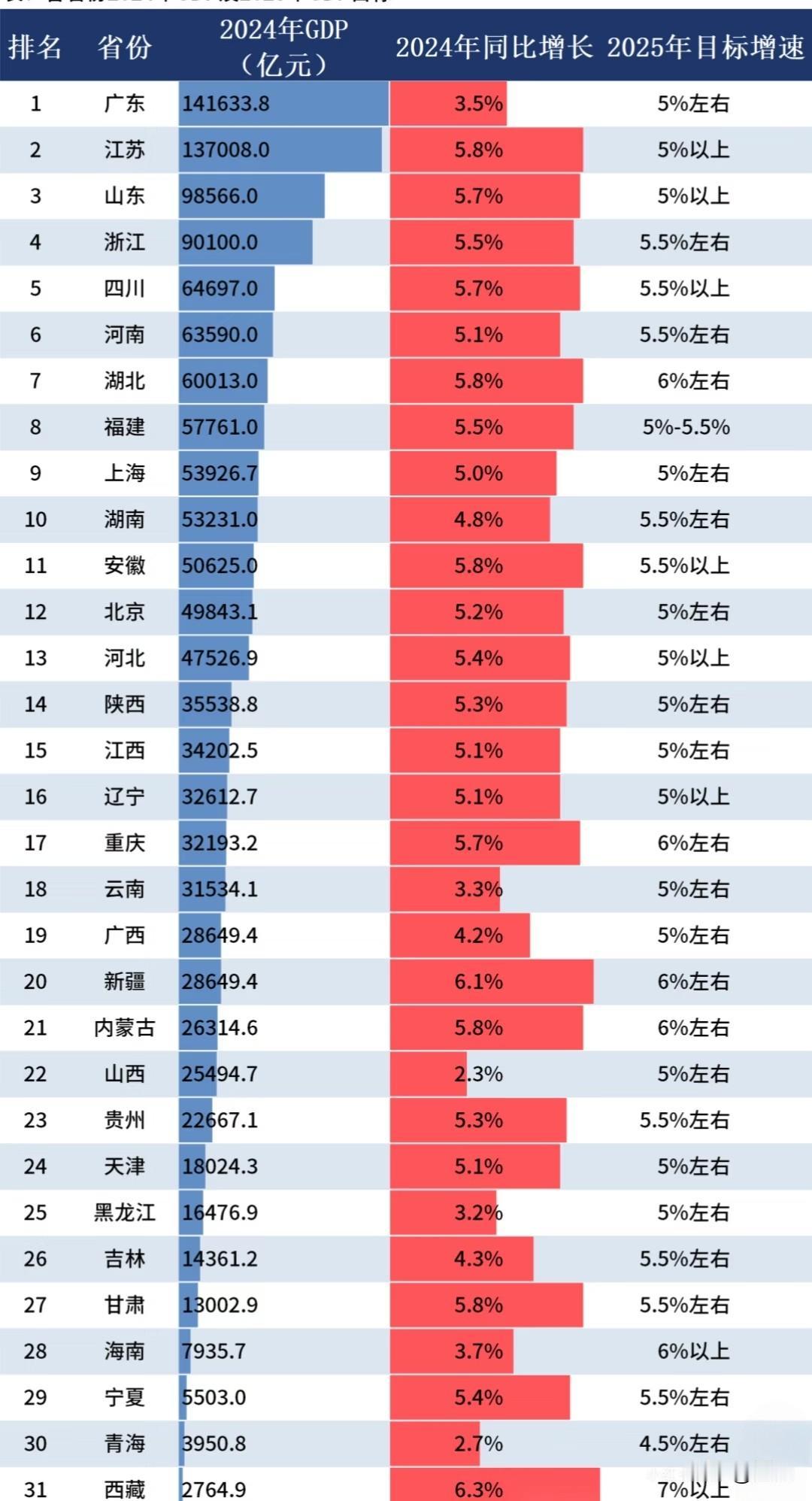 从GDP增速来看,前十名省份分别为:西藏,新疆,江苏,湖北,安徽,内蒙古,甘肃,