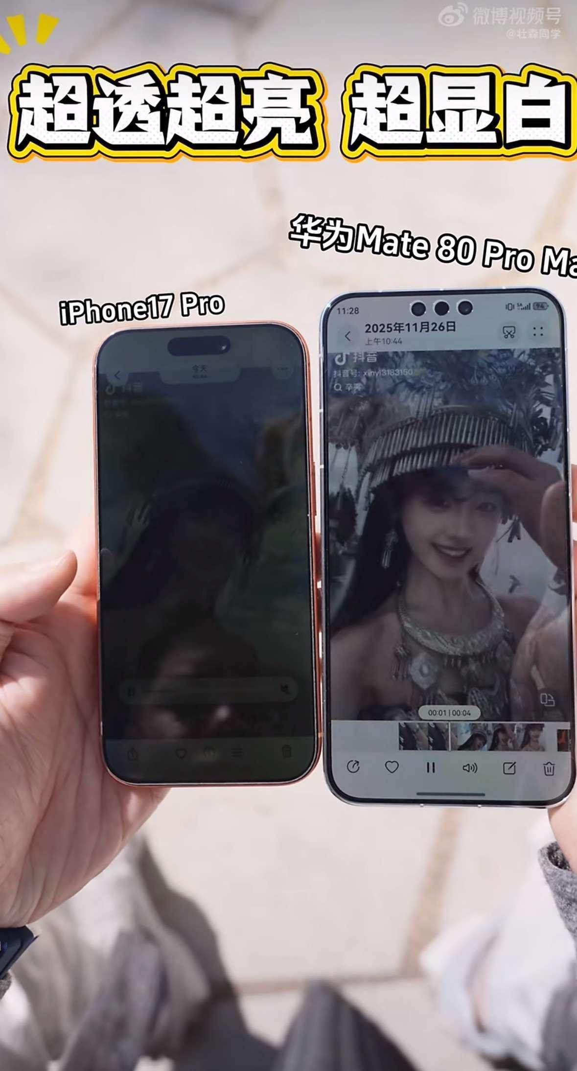 华为Mate 80 Pro Max 这波真把“直播神器”坐实了。4 小时户外稳定直播不掉帧不说,今天媒体的《2025主流机型屏幕亮度比拼》一出来,更是把这块超透亮灵珑屏的含金量打得死死的:大太阳底下,别人都开始发灰隐身了,它还能把弹幕、点赞、粉丝提问亮得清清楚楚。弥补了阳光下不能刷手机的遗憾Mate80神级好屏新疆喀什10万lux+的户外强光,两轮实验全胜,直接告诉你什么叫神级好屏、不惧强光。8000 nits 峰值亮度不是写在 PPT 上的,是你直播时抬手就能看到的真实效果。户外逛展、街拍直播、Vlog……一台手机搞定所有场景。如果你是户外直播党,这块屏真的会让你上头:看得清、跟得上、稳得住。华为Mate 80 Pro Max,再一次把“屏幕体验”这件事拉到了新标杆。Mate80超透亮灵珑屏