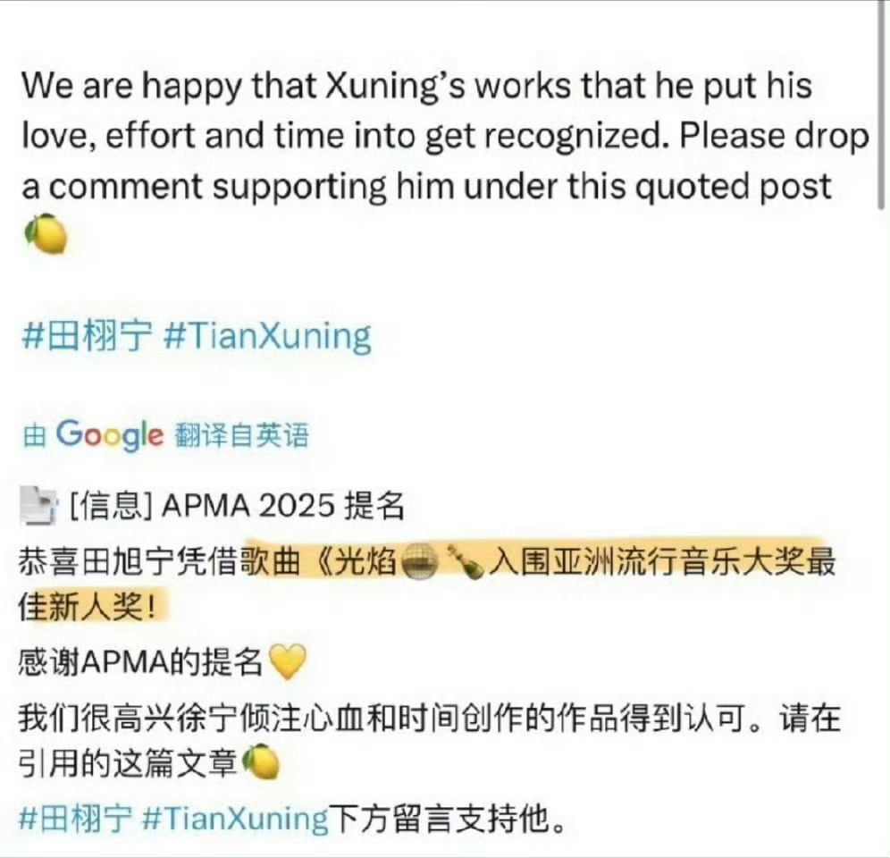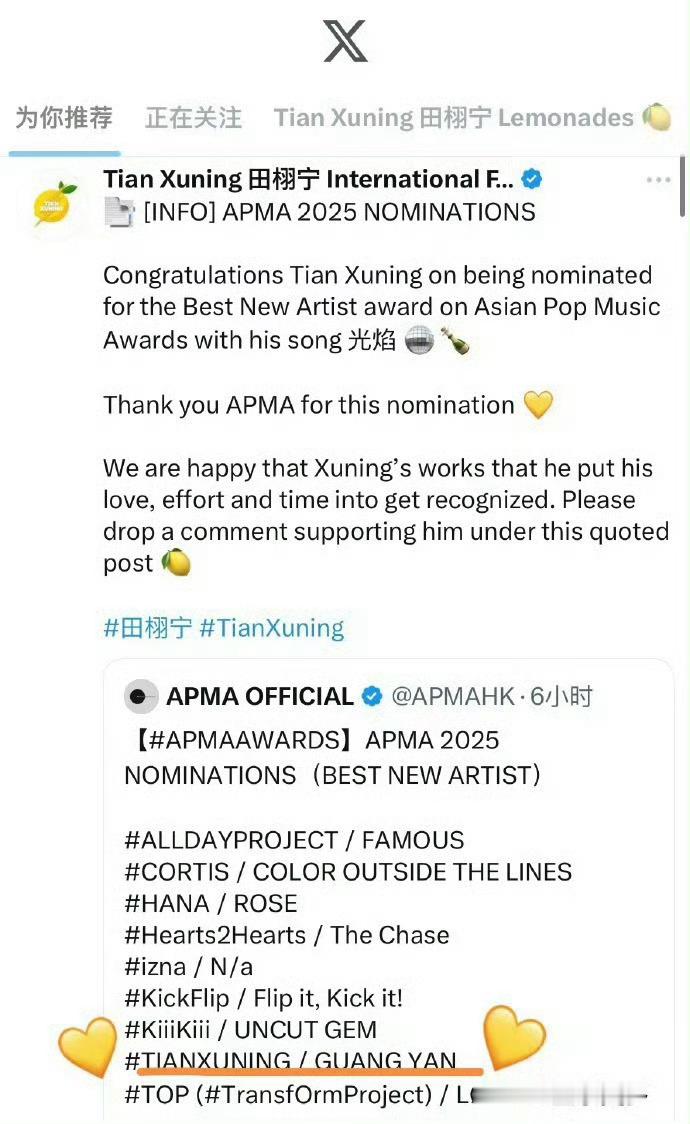 田栩宁纪念邓丽君交响音乐汇讲述人 非官宣不约,田栩宁凭借歌曲《光焰》入围【亚洲流行音乐大奖】最佳新人奖🔥