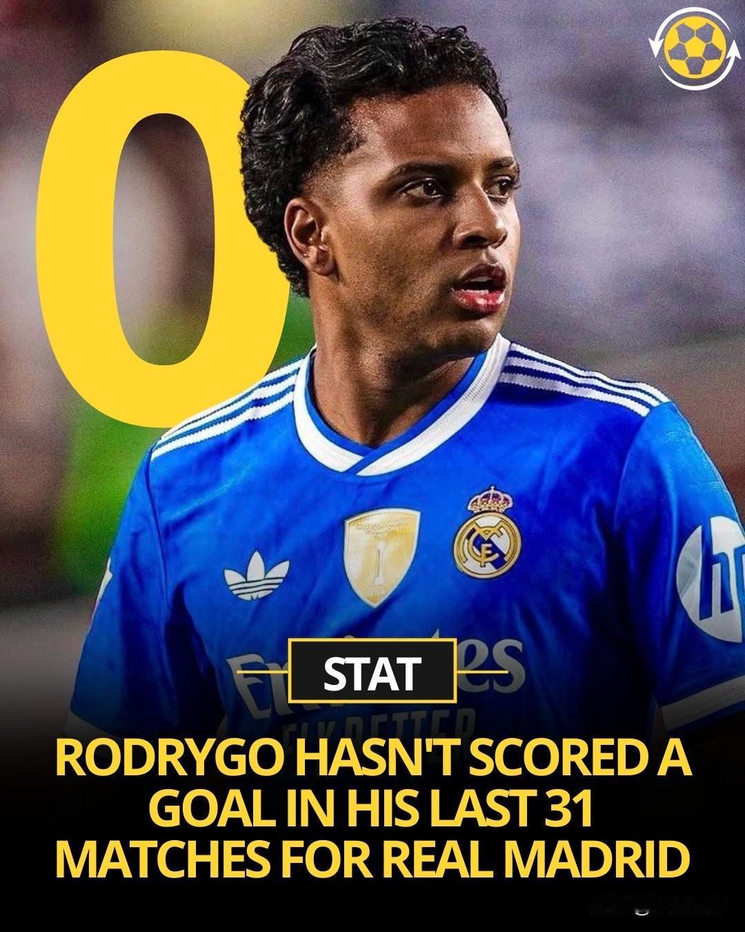 罗德里戈对转会英超持开放态度! 这位皇马球星希望获得更多出场时间以确保在巴西世界杯的位置——阿森纳、利物浦、曼城、曼联、切尔西和热刺都在密切关注他的动态 但皇马坚称他仍是球队计划的一部分……因此任何冬窗转会都将非常困难,可能耗资约8000万欧元。 罗德里戈在皇马最近31次出场中零进球。 这是俱乐部历史上攻击手最长的进球荒纪录。 ❌ 对毕尔巴鄂竞技 ❌ 对赫罗纳 ❌ 对埃尔切 ❌ 对巴列卡诺 ❌ 对利物浦 ❌ 对瓦伦西亚 ❌ 对巴塞罗那 ❌ 对赫塔菲 ❌ 对比利亚雷亚尔 ❌ 对凯拉特阿拉木图 ❌ 对马德里竞技 ❌ 对莱万特 ❌ 对西班牙人 ❌ 对马赛 ❌ 对马略卡 ❌ 对皇家奥维耶多 ❌ 对多特蒙德 ❌ 对萨尔茨堡红牛 ❌ 对利雅得新月 ❌ 对巴塞罗那 ❌ 对赫塔菲 ❌ 对毕尔巴鄂竞技 ❌ 对阿森纳 ❌ 对阿拉维斯 ❌ 对阿森纳 ❌ 对瓦伦西亚 ❌ 对皇家社会 ❌ 对莱加内斯 (来源:@TEAMtalk)